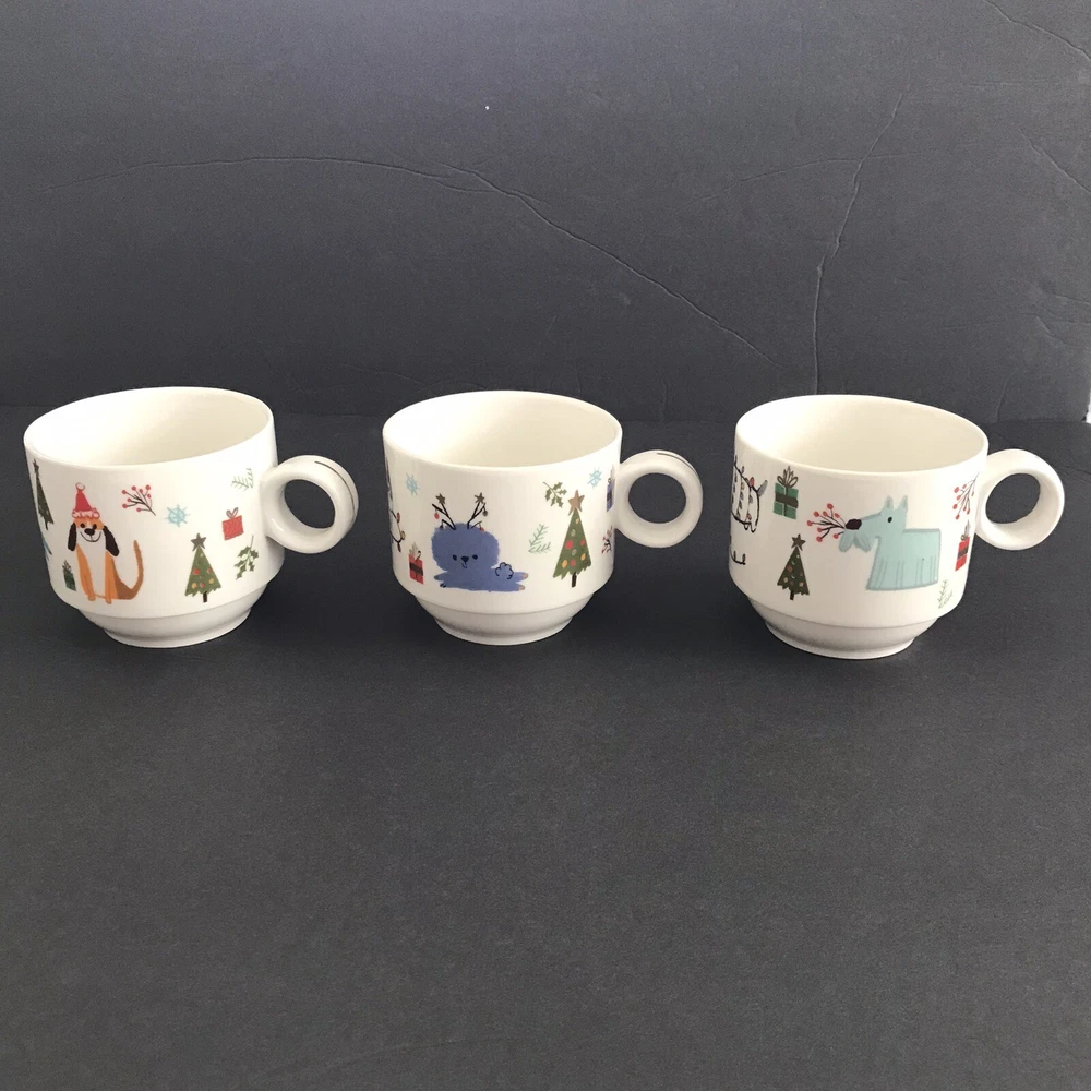This set of 3 Grace Teaware porcelain coffee mugs will be the perfect addition to your holiday decor. The festive dog pattern and multicolor design make them a great choice for Christmas morning coffee or tea. The mugs are made of high-quality porcelain and are stackable for easy storage. Whether you're sipping on hot cocoa by the fire or enjoying a cup of tea with friends and family, these mugs are a charming and functional choice.
