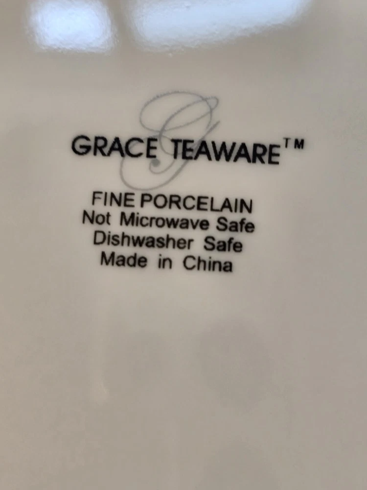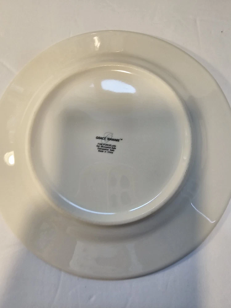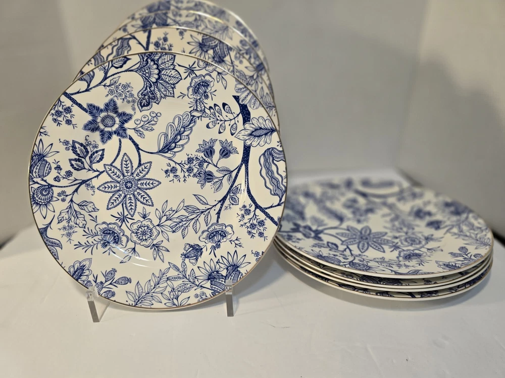 Grace Teaware Beautiful Blue and White Salad Dessert Side Plates. They are 8" diameter and in very good pre owned condition. No chips, cracks or crazing. Lovely gold trim.