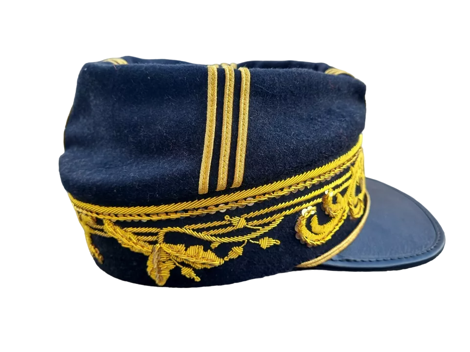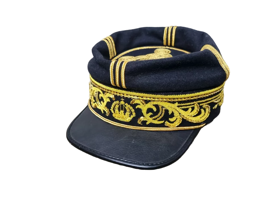 This Imperial Stud Farm Kapi Hat is a must-have for any fan of the Army theme. Made with lightweight wool and felt fabric, it is perfect for casual occasions. The black color and solid pattern give it a stylish look, while the Captain America character adds a touch of personality. The hat is one size fits all and features the Great Squire Chief Emperor Director Stables Imperial Stud Farm Kapi Hat design. It is not vintage and was made in Pakistan. This accessory is perfect for any man looking to add a touch of elegance to their wardrobe.
