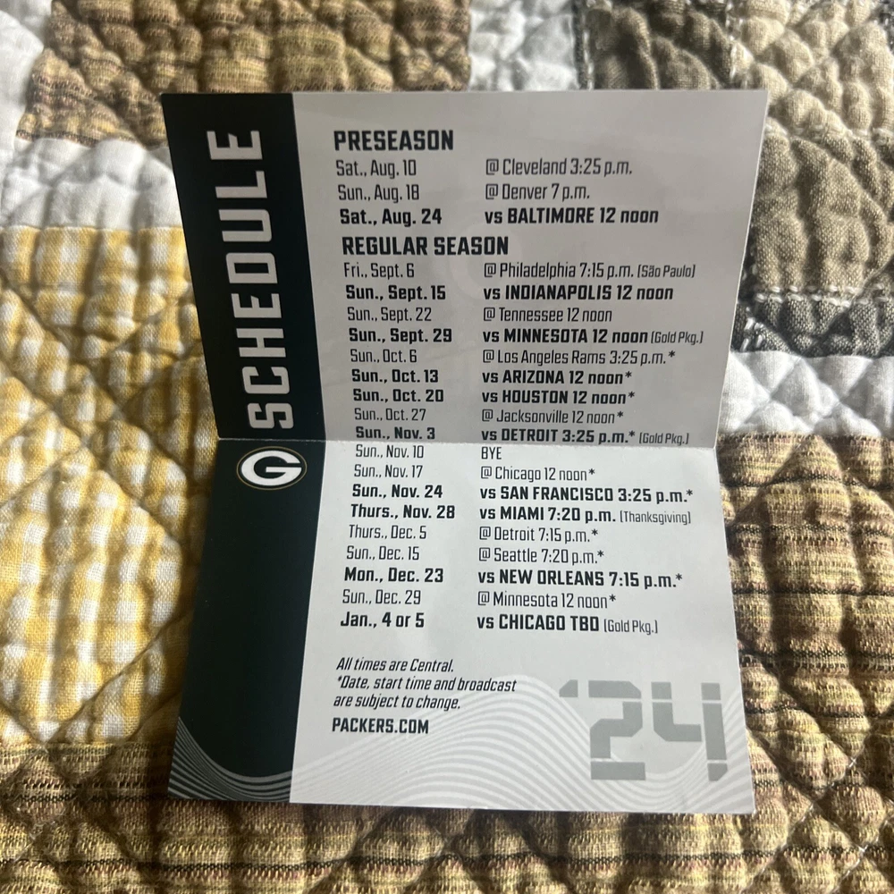Green Bay Packers 2024 Pocket Schedule . Shipped with USPS Ground Advantage.