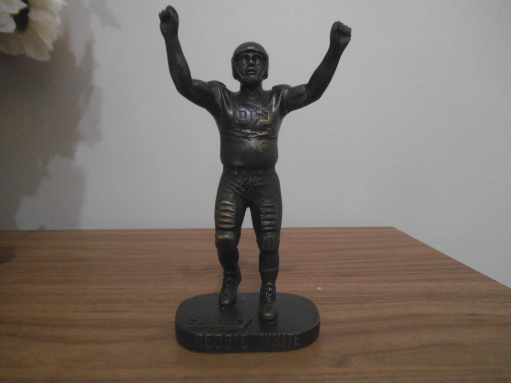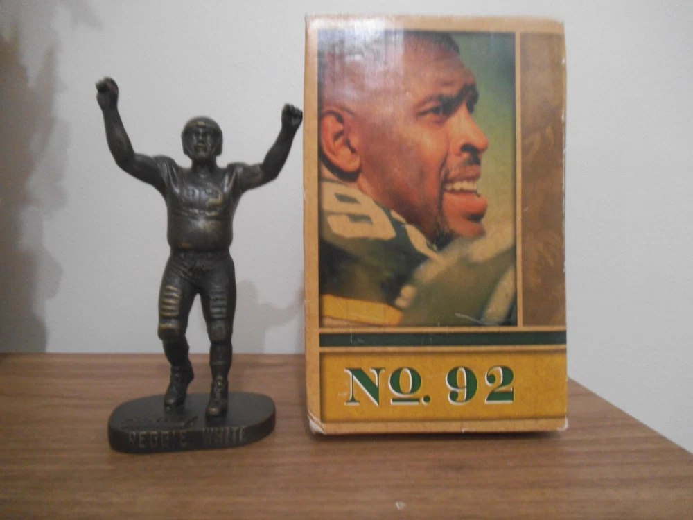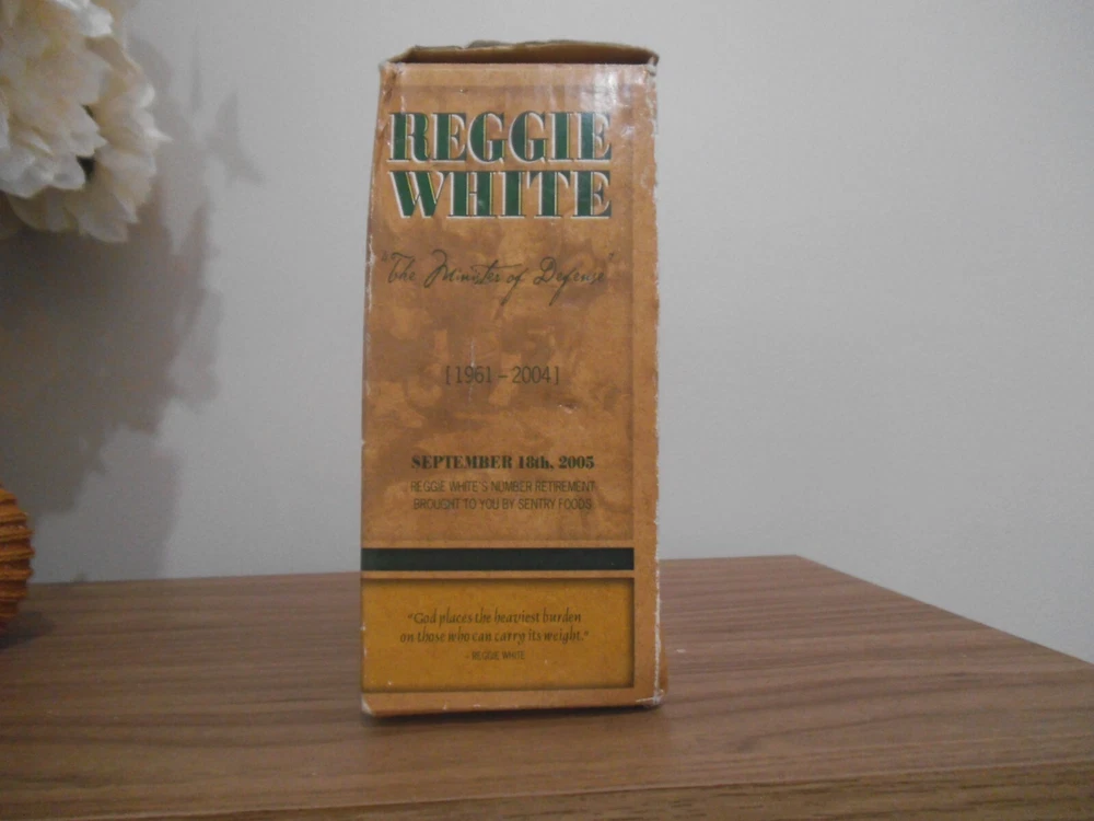 Celebrate the legacy of legendary Green Bay Packers player Reggie White with this commemorative limited edition figurine. Standing at 6 inches tall, this unisex adult figurine is a must-have for any football fan. Made by Alexander Global Promotions WA, this figurine is a perfect addition to your sports memorabilia collection. Featuring Reggie White in his iconic Packers uniform, this figurine is a great way to show your support for the team during the regular season. With its brown color and intricate details, this figurine is a true work of art. Made in China, this officially licensed NFL product is a great gift for any Packers fan. Add this Greenbay Packer 2005 Reggie White Commemortive Limited Edition Figurine to your collection today! NEW IN BOX