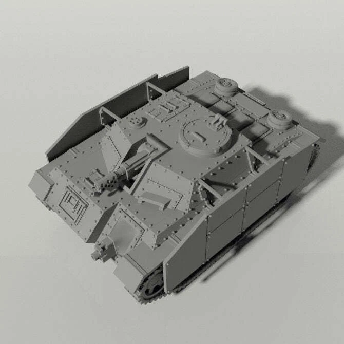 StuG LIFE! CUSTOM MADE TO ORDER Includes one Grim vehicle UNASSEMBLED AND UNPAINTED. This is not a Warhammer 40k model, and no challenge to Games Workshop Trademarks or Copyrights is intended. Highly detailed model using 8K resin. All models will have supports removed and cleaned and arrive cured and unpainted - minimal cleaning/sanding may be required. Packaging; Will be done with care. Models that are printed in pieces will need assembly when delivered. Model Design by Grim Prints https://grimprints.gumroad.com/