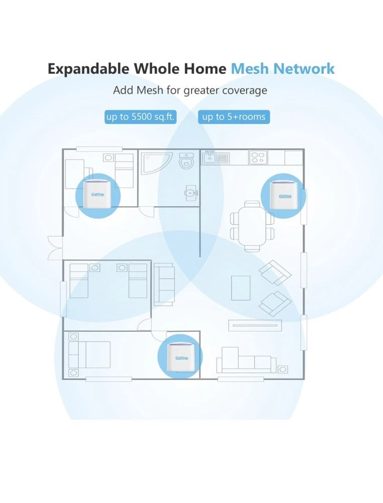 Gshine Cuka AC1200 Mesh Wi-Fi System Up to 5,500 sq. ft. Whole Home Coverage and 100+ Devices,WiFi Router/Extender Replacement, Anitivirus,Work with Alexa -3 Packs
