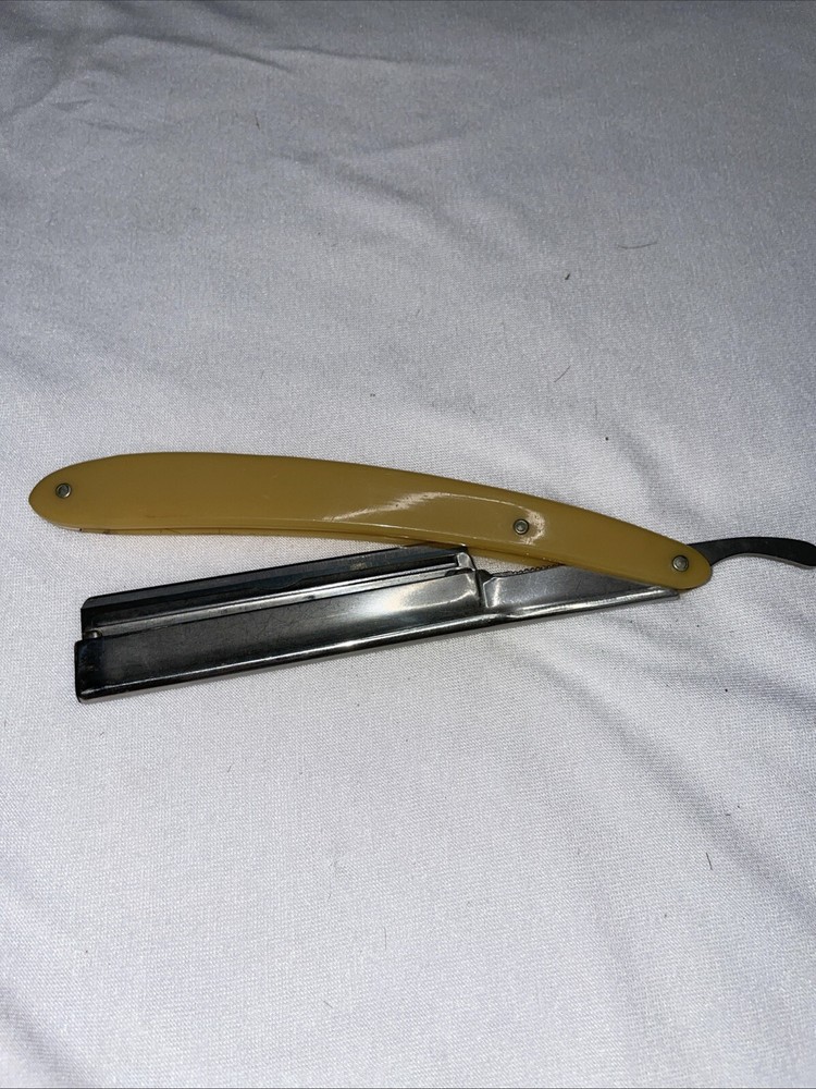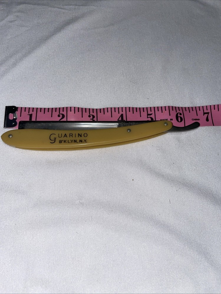 This is a Guarino straight razor made in Brooklyn NY. Blade is a little looser in the handle than it should be but overall is decent condition. The handle is plastic. I ship using USPS Ground Advantage within 2 business days of receiving payment. Thank you for looking 😊