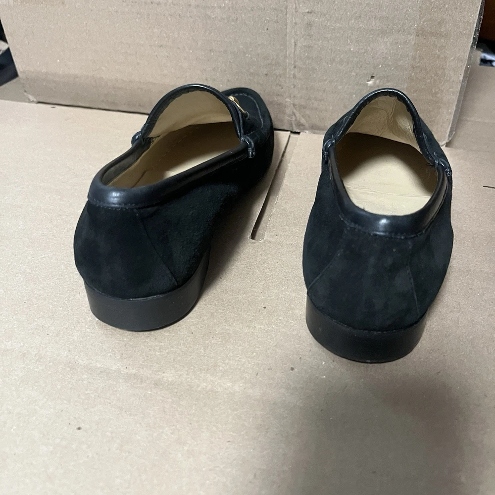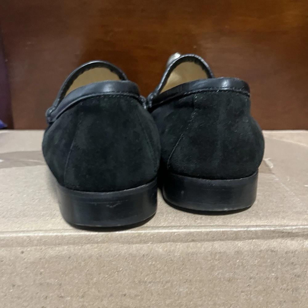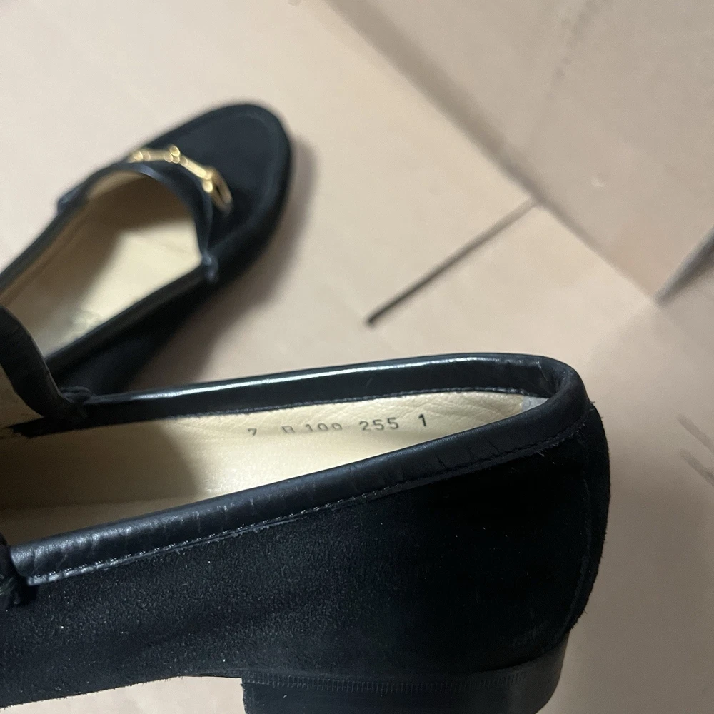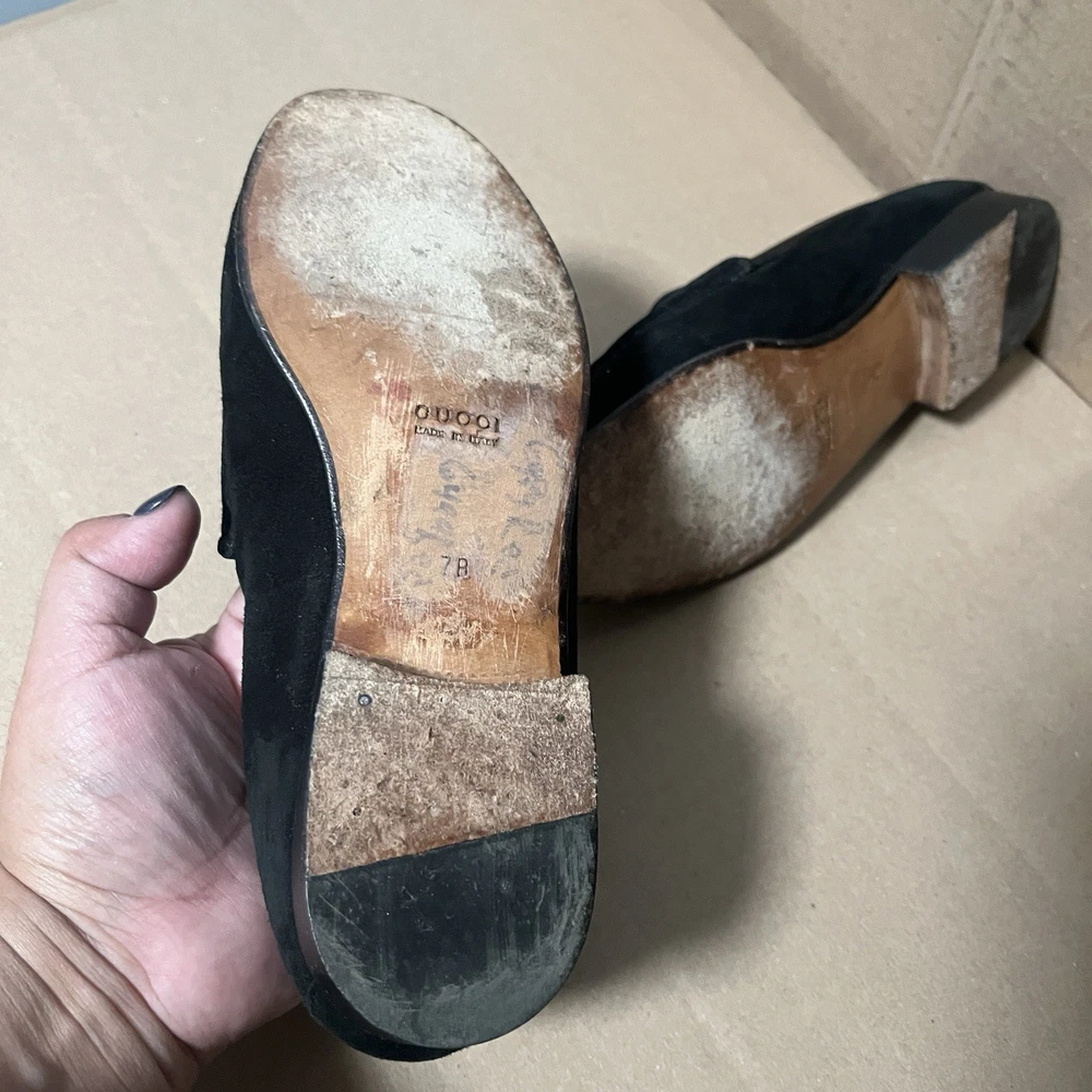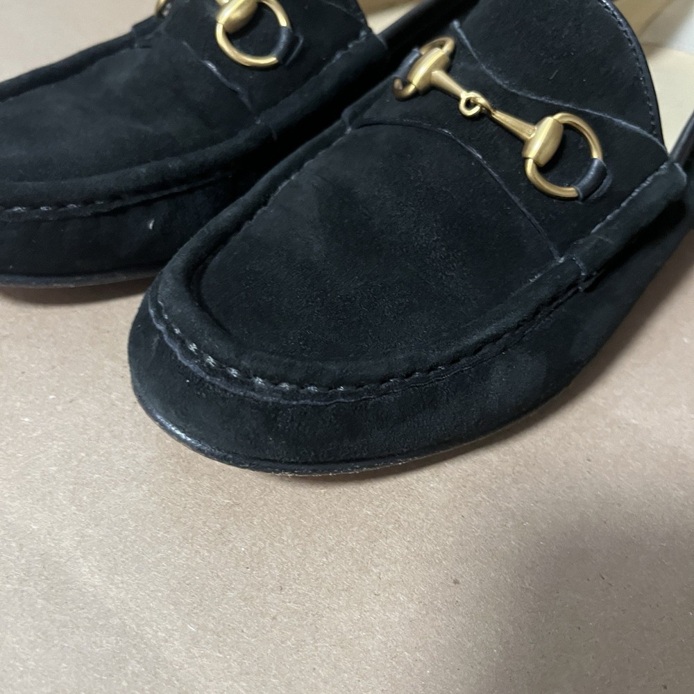 Elevate your wardrobe with these authentic Gucci 1953 Horsebit Loafers in rich black suede, size 7B. Made in Italy, these timeless loafers feature the iconic gold horsebit hardware, smooth leather lining, and leather soles. A classic, luxurious style that never goes out of fashion. Features: Authentic Gucci (stamped inside + outsole) Style: 1953 Horsebit Loafer Color: Black Material: Suede upper / Leather lining & sole Size: 7B (Women’s) 5.5 (Men’s) Made in Italy Gold-tone horsebit detail Timeless and elegant classic Gucci design Condition: Suede uppers: clean with normal light wear Interior: clean Outsoles: wear consistent with age (see photos) Heels: some wear but plenty of life left No rips, tears, or major flaws