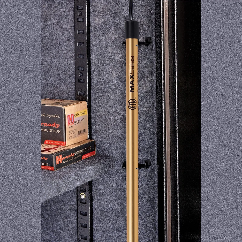 Gun Safe Dehumidifier Rod Dry Rod Easy Installation Plugin Electric Dehumidifier Features: Electric Dehumidifier Rod: Maintenance-free heating rod that provides humidity control in gun safes, cabinets and small enclosures by increasing the temperature in your gun safe to a slightly higher level than the ambient temperature to help to drive out excess humidity Easy to Use, Just Plug It In - gun safe electric dehumidifier can be mounted vertically/horizontally with the snap-on mounting brackets. Innovative plug may be removed to help install the cord through small holes or openings Dehumidifier Rod - ideal moisture absorber for safes that eliminates condensation and dampness and no need to worry about recharging your dehumidifier as it’s always connected. Do not touch after plugging it in Made from lightweight aluminum material with golden glossing finish, ETL qualified OUR PRODUCTS OFFER AN UNCONDITIONAL ONE YEAR SHIPPING We are always working hard to ensure your package arrives as soon as possible. Please understand that some factors like weather, high postal traffic, and the performance of shipping companies are outside of our control. We offer free shipping to the lower 48 states and ship within 3 business days of payment, usually sooner. We do not accept P.O. Boxes. Please provide a physical address.