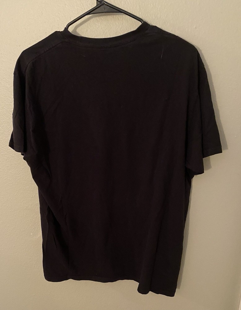 This is a men's black Guns N Roses t-shirt in size Large with a skull wearing a top hat design. The shirt has short sleeves, a crew neck, and is made of cotton. It is machine washable and has a regular fit. The brand is Bravado, and the theme is skull. This t-shirt is not vintage and is manufactured in Mexico.