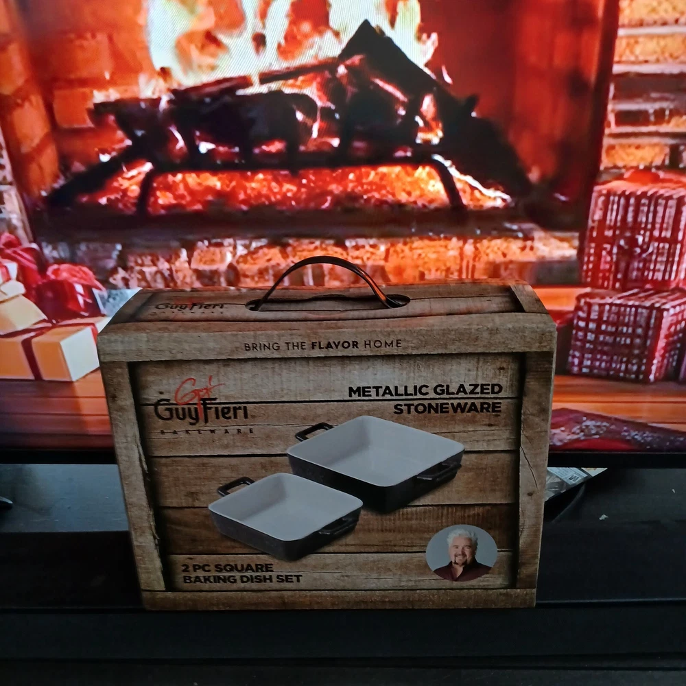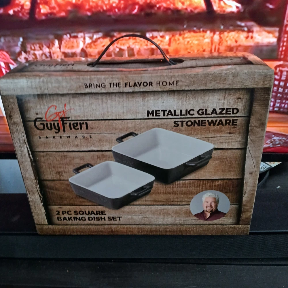 Guy Fieri Metallic Glazed Stoneware Bakeware with this 2-piece rectangle baking dish set. Designed for both gas and electric ovens, these versatile dishes are perfect for a range of culinary creations. Crafted from premium ceramic material with a ceramic surface coating, they ensure even baking and effortless cleanup. The sleek black color adds a touch of sophistication to your kitchen, while the set includes two rectangle baking dishes, ideal for multi-tasking in the oven.