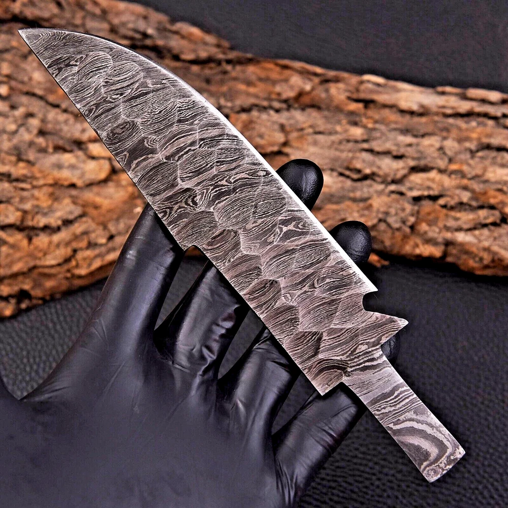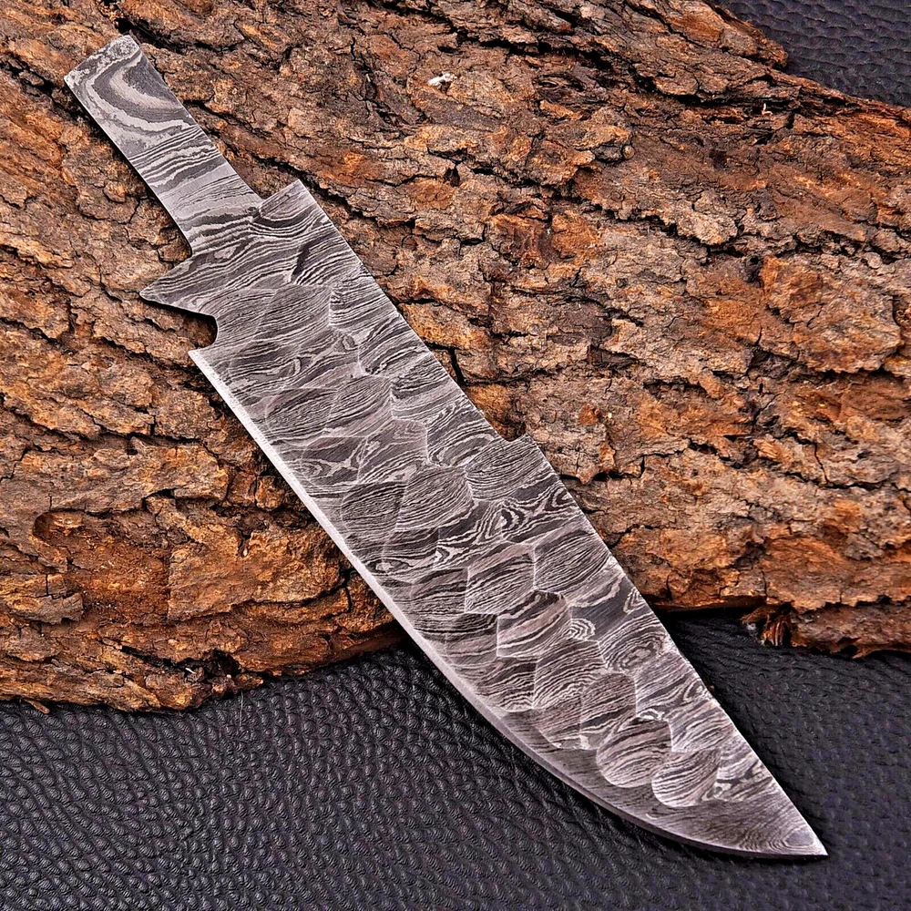 HAND FORGED DAMASCUS STEEL BLANK BLADE FOR SKINNING HUNTING KNIFE This superb design Blank Blade is hand forged. Blade of this knife has a nice file work and is made of 512 layers of 4340 stainless steel and 1075 high carbon steel and hardness 55-58 HRC . This robust Blank Blade is lab tested under intense conditions, the balance and shape of this Blank Blade ensures perfect grip. Overall Length: 8" Inches Damascus Design: Twist Pattern Layers: 512 Hardness: 55-58 HRC Warning: Keep fingers clear of blades Store away from children.