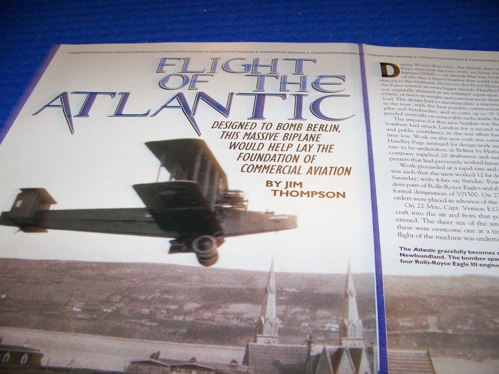 UP FOR SALE IS AN ORIGINAL PRINT 3-PAGE ARTICLE ON......... ....... HANDLEY-PAGE V/1500 "FLIGHT OF THE ATLANTIC" (3-PAGES) Page/s size: APROX: 8" X 11" SUBJECT: ............... HANDLEY-PAGE V/1500 "FLIGHT OF THE ATLANTIC" (3-PAGES) AUTHOR/ARTIST: N/A YEAR: 2001 ORIGINAL PRINT SCALE: N/A ARTICLE FEATURES: -HANDLEY-PAGE V/1500 "FLIGHT OF THE ATLANTIC" (3-PAGES) . ..STORY/HISTORY/DETAILS/2-PAGE HEADER PHOTO PAGES ..A MUST HAVE ON THE HANDLEY-PAGE V/1500 "FLIGHT OF THE ATLANTIC" CONDITION: GREAT........... **SOLD FOR 3-PAGE/S ON SUBJECT LISTED ABOVE AND/OR DRAWINGS/CUTAWAY ONLY... ANY OTHER ARTICLE ON BACK OF DRAWINGS/ARTICLE ARE NOT REPRESENTED IN THIS AUCTION!*** (REMEMEBER THESE ARTICLES ARE EXTREMELY OLD AND RARE...SOME MAY HAVE SOME BORDER DISCOLORATION/SMALL EDGE CHIPS/PAGE DISCOLORATION).....SEE CONDITION AND NOTES LISTED ABOVE AS TO EACH ARTICLE! **THESE ARE AIRCRAFT ARTICLES THAT HAVE BEEN EXTRACTED FROM VINTAGE MAGAZINES/ECT,.. AND ARE INDIVIDUAL PAGES OF EACH SUBJECT AND SOLD AS COMPLETE ARTICLES ON EACH SAID AIRCRAFT AS LISTED ABOVE!...... NOT SOLD AS A COMPLETE MAGAZINE or BOOKLET!!! **all articles are shipped flat on cardboard flat and mail flat in manilla envelope to INSURE condition! ** I DO OFFER COMBINED SHIPPING ON MULTIPLE ITEMS PURCHASED