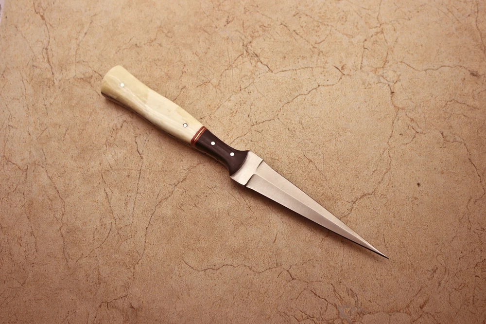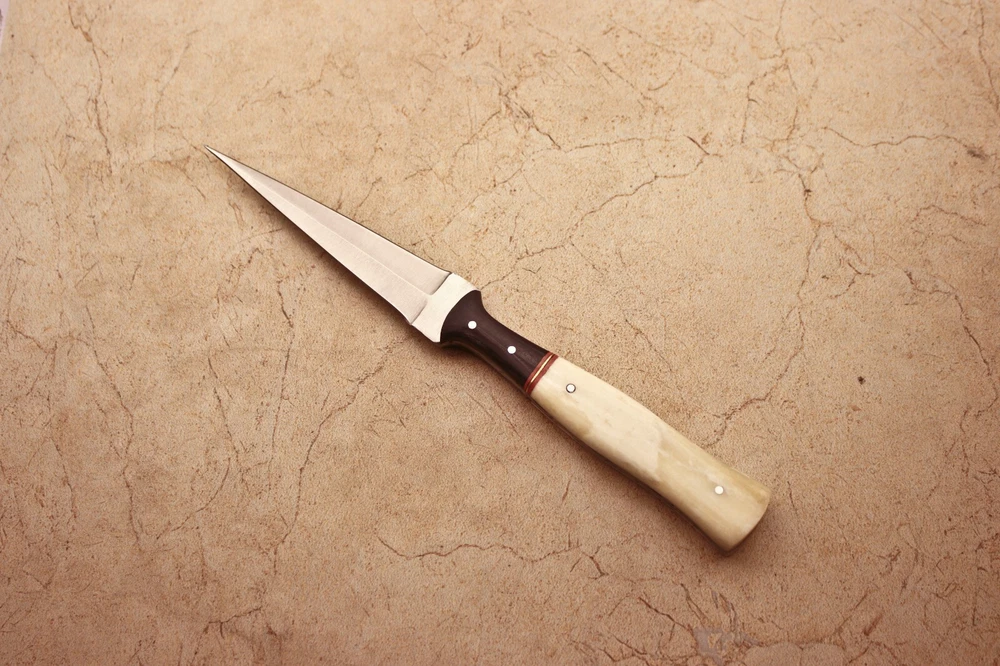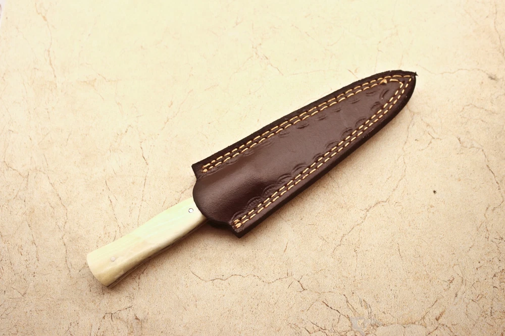 HANDMADE HIGH STSAINLESS STEEL BLADE ROSEWOOD HANDLE FIXED BLADE HUNTING KNIFE If you’re looking for a fixed blade knife that will be a reliable companion, This knife epitomizes the bold. The main qualities that make it great: sturdiness, sharpness, and looks. The ergonomic design is easy to hold and carry with the included leather sheath. Great for survivalists, tactical personnel, outdoors-men or anyone who appreciates fine craftsmanship and an amazing blade. The blade is high Stainless steel, double edged, and razor sharp. It's sturdy enough to last through even the harshest conditions. The handle is beautifully polished, with real rose wood grips. Designed to feel comfortable and natural in the hand. Even in different conditions, you'll feel confident that the knife will stay firmly within your grasp. Total Length: 9.5" Blade length: 5" Handle Length : 4.5" Blade Material: Stainless steel Blade Hardness: 50-58HRC on Rockwell scale Total Layers: 512 Handle Material: Pakka/rose Wood /Bone Sheath: Genuine Cowhide Leather We do sell wholesale, please contact us for special discounts on bulk orders. FEEDBACK POLICY: YOUR FEEDBACK IS VERY IMPORTANT FOR US, IF THEIR IS ANY KIND OF PROBLEM PLEASE GIVE US OPPORTUNITY TO SORT THE ISSUE