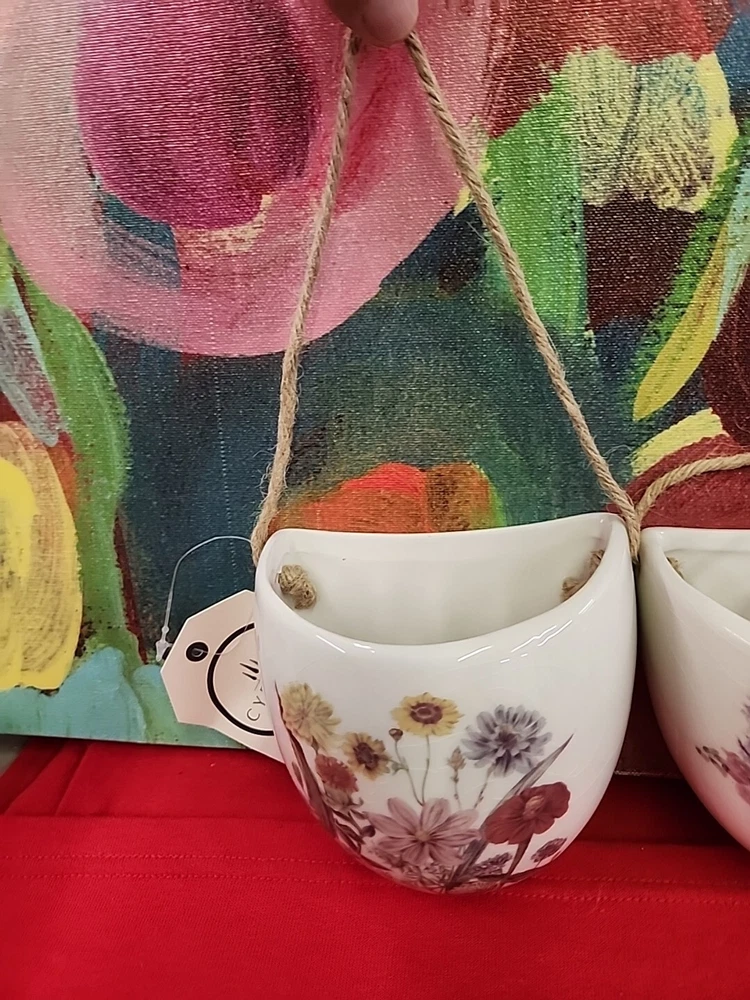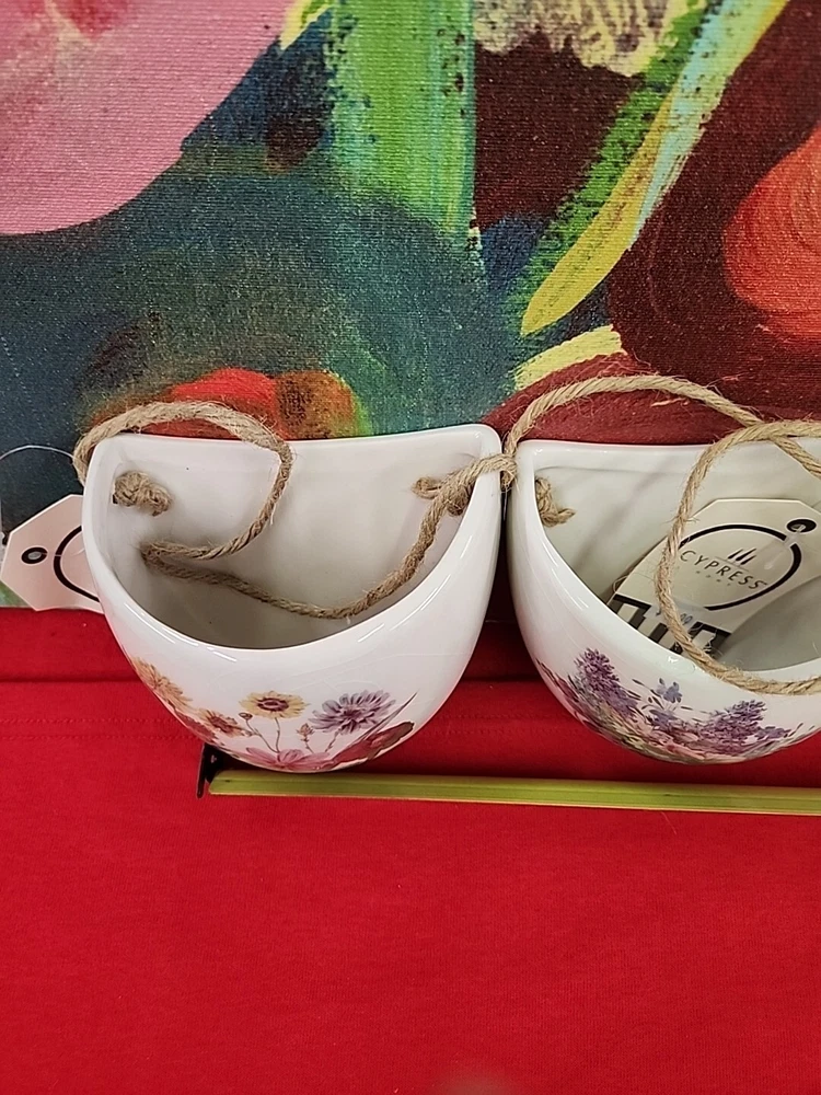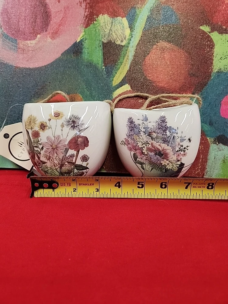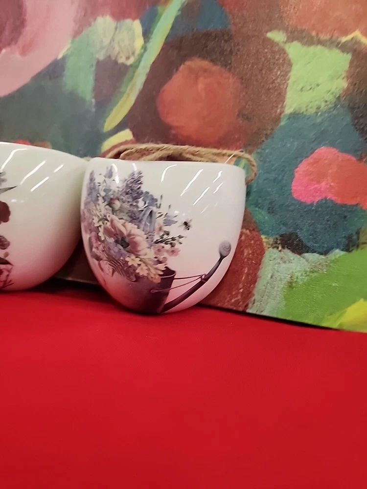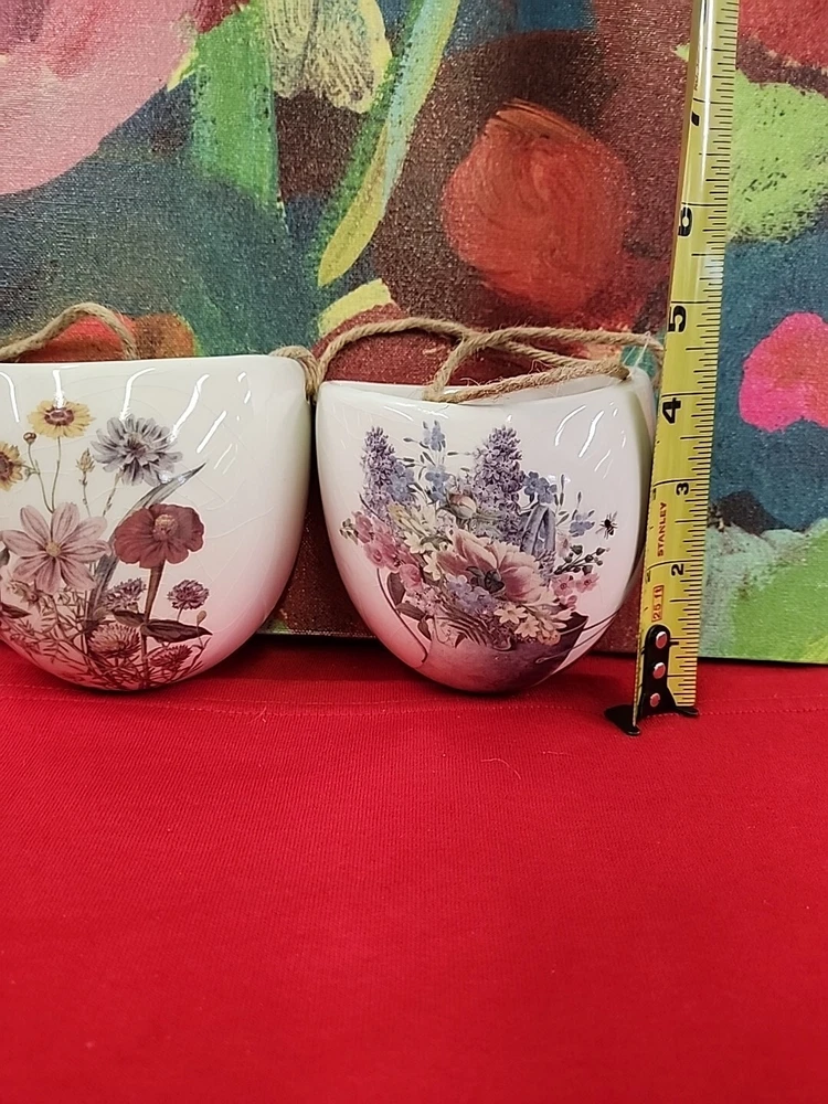 HANGING WALL PLANTERS Set Of 2 Ceramic Water Can Flowers New With Tags