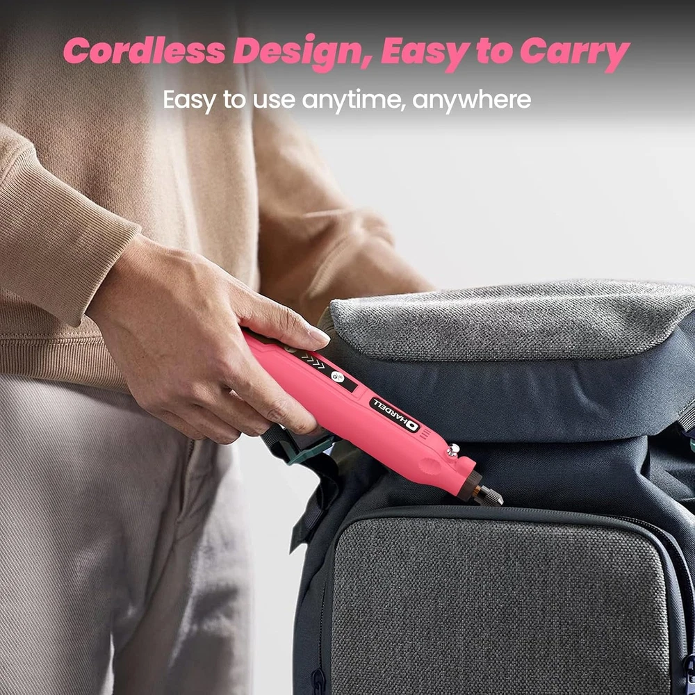 Store New Arrivals Add to Favorite View Feedback Contact HARDELL Mini Cordless Rotary Tool, 5-Speed 3.7V Rechargeable Kit with 61 Accessories, USB Charging Multi-Purpose Power Tool for Sanding, Polishing, Drilling, Etching, Engraving, DIY Crafts Description Item model number QOM-DC-4N Part Number A41-HDRT0702-1@gmpink Style Pink-3.7v Power Source cordless-electric Color Pink-3.7v Brand HARDELL Country of Origin China Batteries Required? Yes Package Dimensions 7.83 x 4.37 x 1.81 inches Item Weight 4.8 ounces Batteries 1 Lithium Ion batteries required. Batteries Included? No Voltage 3.7 Volts Maximum Rotational Speed 18000 RPM Minimum Speed 5000 RPM Special Features Cordless Special Feature Cordless Number of Batteries 1 Lithium Ion batteries required. Battery Cell Type Lithium-Nickel Manganese Cobalt (NMC) Manufacturer HARDELL 【Multipurpose Rotary Tool Set】The high-performance and low-noise rotary tool combined with 61 most popular power rotary tool accessories for DIY fine work, Not for Heavy-duty Projects. 【5-Speed Setting】The cordless rotary tool can realize 5-speed adjustment(5000/8000/11000/14000/18000 RPM),which makes it easier to adjust to a suitable speed to meet the power demand in different scenarios. 【Compact Lightweight】Powerful but small and light, just like holding a pen while in use, for ultimate control and precision as well as for comfort.The mini size rotary tool allows you to take it and use it whenever and anywhere 【Rechargeable Battery】cordless rotary tool comes with 3.7V rechargeable battery. Battery capacity is 2000, which can be charged and discharged more than 200 minutes. USB interface making charging easier and more convenient. 【Rotary Drill with LED Indicator】The upgraded small cordless rotary tool has a blind spot lighting LED design. Reduce backlight shadows and overcome the adverse effects of dark areas on the use of the drill for resin, and provide you with a better experience Product Description Highlighted features HARDELL MINI Rotary Tool for Sanding, Polishing, Drilling, Engraving, DIY Cordless Freedom: Enjoy the convenience of our tool's cordless design, enabling usage anywhere without needing an electrical outlet Quick and Easy Charging: Experience hassle-free charging with Type-C power cord, ensuring convenience and simplicity Adjustable Speed: Customize your work with our variable speed feature, offering 5 RPM levels ranging from 5000 to 18000 RPM Ultimate Control and Comfort: Effortlessly handle your projects with our pen-like grip, providing precise control and comfort The video showcases the product in use. The video guides you through product setup. The video compares multiple products. The video shows the product being unpacked. Sanding Accessories Use to grind pet nails or work pieces made of Metal, wood, stone, and plastic. Carving Accessories Ideal for wood, glass, steel, plastic, etc. Drilling Accessories Ideal for wood, plastic, stone, shell, etc. Not for Heavy-duty Projects!!! Polishing Accessories Ideal for glass, jade, steel, etc. Cutting Accessories Ideal for wood, shell, plastic, etc. Not for Heavy-duty Projects!!! 1 Sanding 2 Carving 3 Drilling 4 Polishing 5 Cutting The Tools You Need for Every Job Add to Cart Add to Cart Add to Cart Add to Cart Add to Cart Add to Cart Add to Cart Customer Reviews 4.3 out of 5 stars 2,093 4.2 out of 5 stars 1,289 4.3 out of 5 stars 161 4.4 out of 5 stars 570 4.3 out of 5 stars 132 4.6 out of 5 stars 267 4.7 out of 5 stars 78 Price $25.99 $ 25 . 99 $20.59 $ 20 . 59 $19.99 $ 19 . 99 $26.99 $ 26 . 99 $37.99 $ 37 . 99 $24.99 $ 24 . 99 $26.68 $ 26 . 68 Speed 5-Speed: 5,000-18,000 RPM 5-Speed: 5,000-15,000 RPM 5-Speed: 5,000-15,000 RPM 5-Speed: 5,000 - 18,000RPM 6-Speed: 5000-30000 RPM / / Collet Size φ1.0mmφ1.6mm/φ2.3mm φ1.6mm/φ2.3mm φ1.6mm/φ2.3mm φ1.6mm/φ2.3mm/φ3.2mm φ1.6mm/φ2.3mm/φ3.2mm / / Rating 3.7V 3.7V (Use While Charging) 3.7V (Use While Charging) 4V 12V / / Accessories 61pcs Accessories 43pcs Accessories 43pcs Accessories 86pcs Accessories 94pcs Accessories 282pcs Accessories 508pcs Accessories Cordless ✔ ✔ ✔ ✔ ✔ ✘ ✔ ABOUT US We offer the best prices around on high quality products. Our E-store includes media such as books, movies, music and games while offering electronics, toys, sporting apparel, clothing, tools, general home, garden items and more. SHIPPING We are always working hard to ensure your package arrives as soon as possible. Please understand that some factors like weather, high postal traffic, and the performance of shipping companies are outside of our control. We offer free shipping to the lower 48 states and ship within 2 business days of payment, usually sooner. We do not accept P.O. Boxes. Please provide a physical address. RETURNS We offer a 30-Day Return Policy on items which you are not completely satisfied with. You have the option for a full-refund or an exchange of the item. No returns are available on items shipped outside of the USA. PAYMENT We accept PayPal. CONTACT US This page content is yet to come Please ad us to your favorite seller and visit again later Thank You CUSTOMER SATISFACTION We try our very best to make sure every customer is completely satisfied. If there's a problem, message us! We're happy to help.