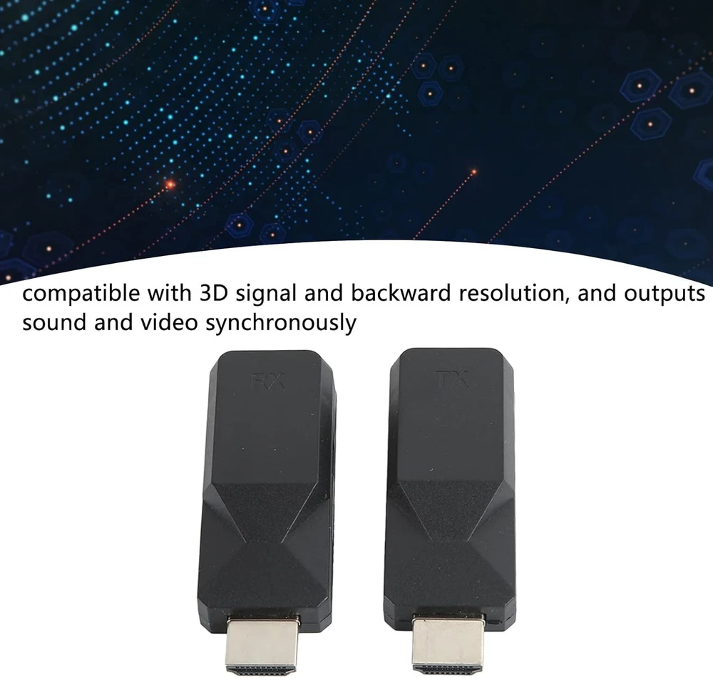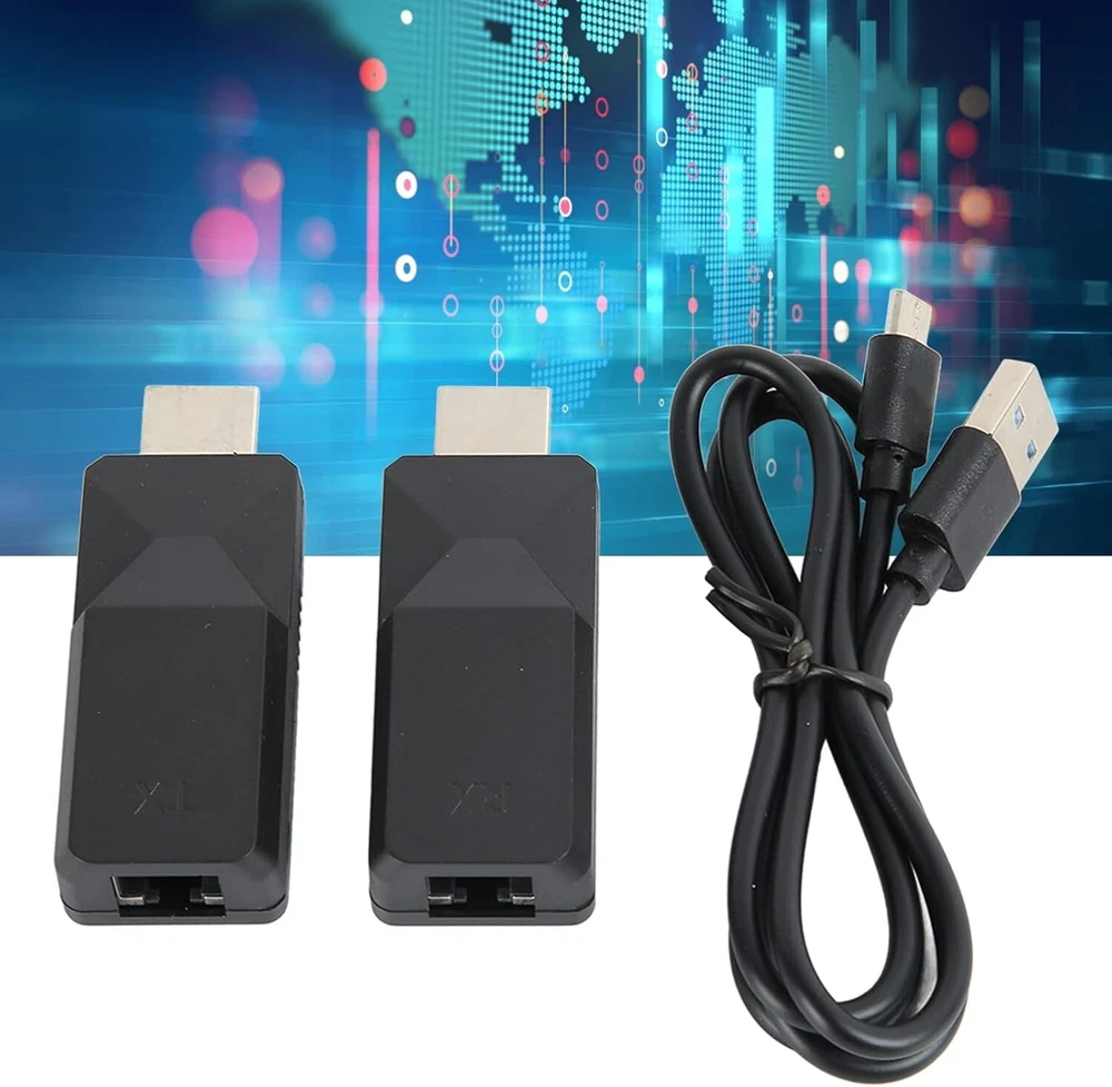 HDMI Transmitter and Receiver Wireless HDMI Extender Kit 165ft RJ45 to HDMI Compatible Devices Monitor Specific Uses For Product Monitor Connector Type RJ45 Color Black 【HD Multimedia Interface Extender】Provides long distance HD multimedia interface extension over a single CAT5 6 cable, sending AV up to 165ft/50m over a network cable, Cat6 7 up to 50m, Cat5e up to 40m. Sound Sampling Rate: 32KHz, 44.1KHz and 48KHz. 【Simple Setup】The RJ45 to HD multimedia interface extender is designed with HD multimedia interface male headers on the transmitter and receiver, no HD multimedia interface cable required. The HD multimedia interface adapter is more secure. Plug and play. 【High Definition 】The RJ45 to HD multimedia interface extender transmitter receiver adopts full HD video resolution of 1920x1080 at 60Hz, compatible with 3D and backward resolution, and outputs sound and video synchronously. It is compact and portable in size. 【Clear and Stable】The HD multimedia interface long distance extension adapter has built in automatic adjustment system to make the image glossy, clear and stable with good stability and strong security. It is suitable for large homes, factories, construction sites, data control centers, and more. Return Policy: We offer a 30 day return policy from the receiving date. Please contact us for a Return Label. Please use our return label provided by us because it will go back to our supplier. Feedback: Your satisfaction is very important to us! If you have any problem with your order, please contact us and we will do our very best to make you satisfied. As long as you are happy with your purchase, please leave a positive feedback for us. We will always leave you a positive feedback in return. If you have any problem with your purchase, please do not leave a negative feedback. Please Contact us ... and your issue will be solved quickly and positively We are a small family-owned business trying to make it, not a huge company that doesn't care ... We will ALWAYS do our best for you!