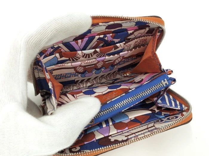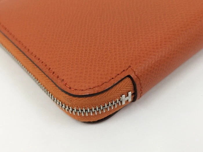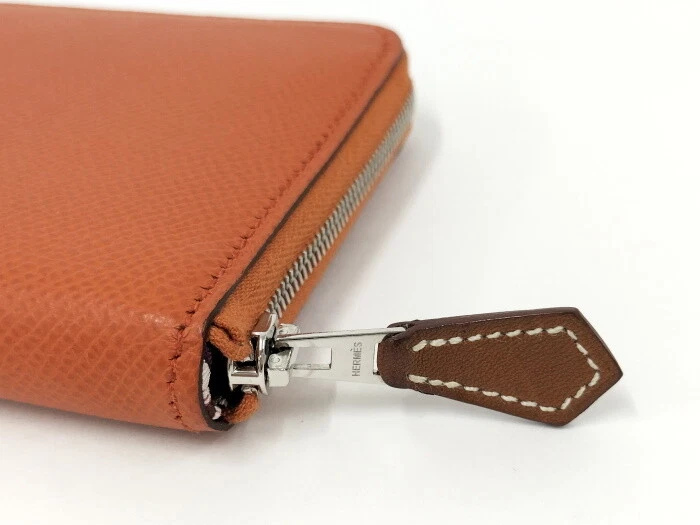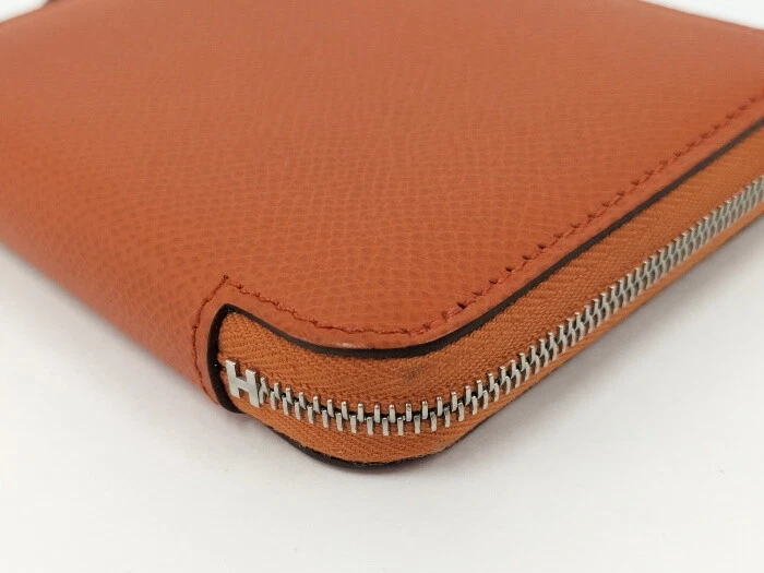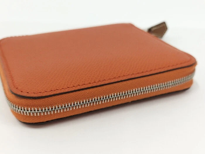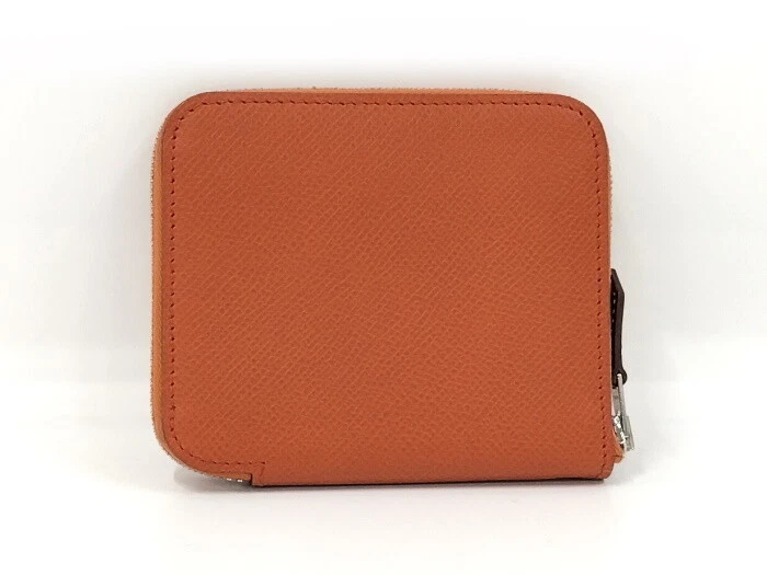 HERMES coin purse azap silk in leather orange z Stamp 978972