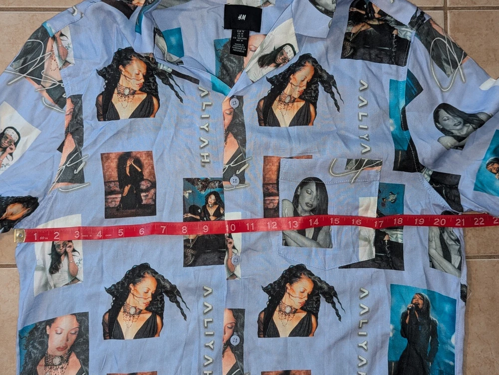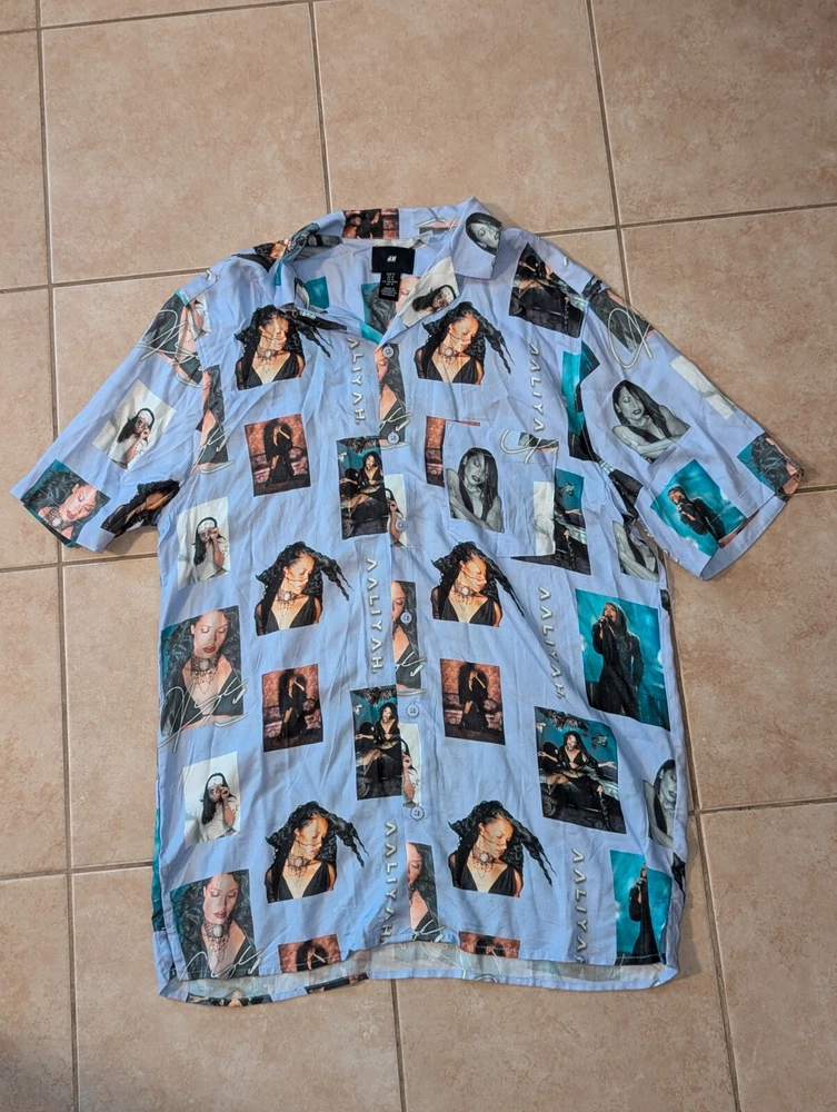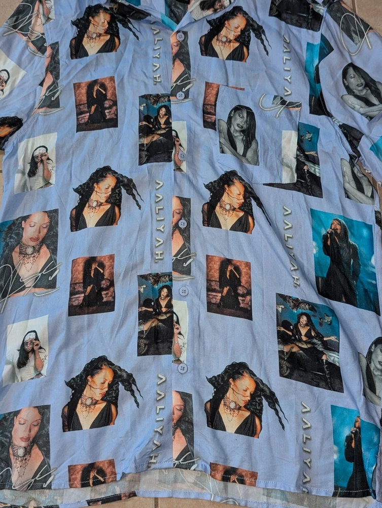 H&M Aaliyah Tribute Button Down Graphic Pocket Shirt Hip Hop R&B Streetwear