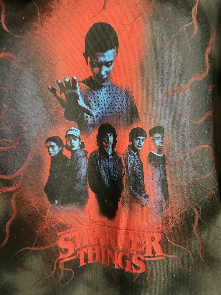 Get ready to rock the H&M Stranger Things Hoodie in style! This unisex hoodie is perfect for any occasion, whether you're hitting the gym or just lounging around. With a chest size of see photos, this regular fit hoodie is made of a comfortable blend of polyester and cotton materials that are machine washable for easy care. Featuring a multicolor tie-dye design with the H&M logo accents, this pullover hoodie is a must-have for any fan of the popular TV show. The long sleeve hoodie comes in size medium and is perfect for both men and women. Don't miss out on this amazing piece from H&M! READ, has a little piling. Can’t see in photos.