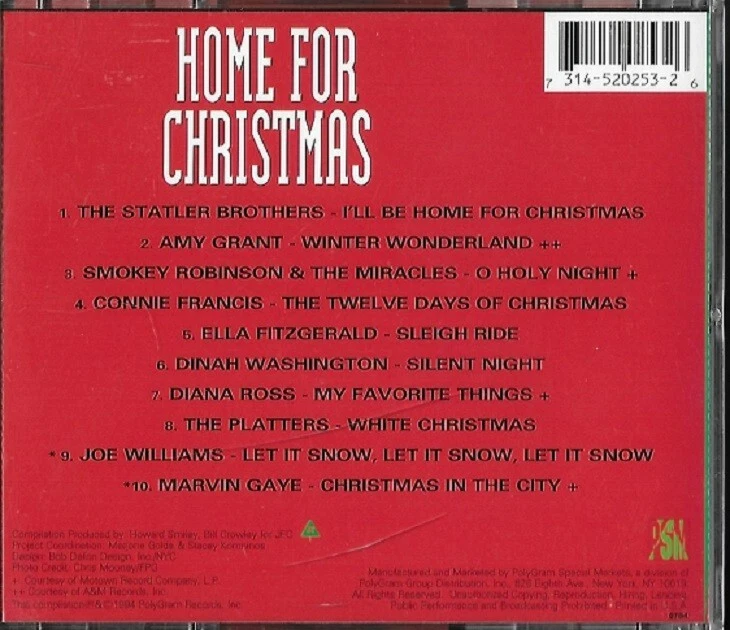 HOME FOR CHRISTMAS, 314 520 253-2, (CD, 1994 ) CHR-075, EX, COMBINED SHIPPING SPECIAL, SHIPPING $4.65 MEDIA MAIL, EXTRA CD’s ORDERED TOGETHER, $0.50 EACH SHIPPING, JUST PLACE ITEMS IN YOUR SHOPPING CART, THEN REQUEST INVOICE. WE WILL DO THE REST. THANK YOU,