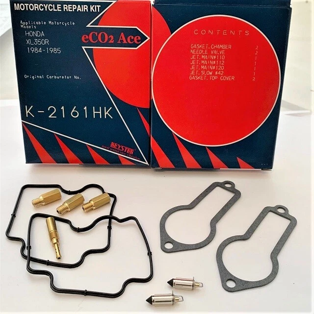 KEYSTER CARBURETOR REPAIR KIT NEED MORE KITS OR OTHER PARTS? CLICK HERE!! Product Description NEW HONDA XL350R KEYSTER CARBURETOR REPAIR KIT 1984 - 1985 Part# K-2161HK was K-1550HK FREE SHIPPING CONTINENTAL USA AND CANADA!! Fits HONDA 1984 - 1985 XL350R USA AND CANADA MODELS ONLY Kit Contains - 2 Viton non swelling float bowl Gaskets - 2 alcohol resistant float needles - #120 + #112 + #110 Main Jets (now correct) - #42 Pilot Jet - 2 Top Gaskets (now correct) GREAT PRICE FOR THE BEST MADE IN JAPAN MOST COMPLETE KIT ON THE MARKET BETTER THAN OEM QUALITY!! DO NOT BE FOOLED BY CHEAP CHINESE OR TAIWAN IMITATION KITS THEY HAVE NOT PERFECTED THE RESISTANCE TO ALCOHOL IN OUR FUEL YET!! KEYSTER HAS BEEN IN BUSINESS FOR OVER 80 YEARS!!