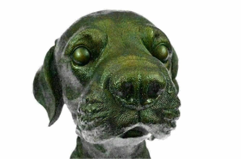 HOT CAST BRONZE DOG FIGURE SCULPTURE LAB LABRADOR RETRIEVER SIGNED MOORE FIGURE HOT CAST BRONZE DOG FIGURE SCULPTURE LAB LABRADOR RETRIEVER SIGNED MOORE FIGURE Condition : This sculpture is in perfect condition. Bronze Dimensions: Height 9" X Width 9" Weight: 10 LBS Inventory: 64DW1144846 Meet the delightful Labrador puppy immortalized in this adorable bronze statue, capturing the essence of puppyhood in a heartwarming pose. The puppy sits with an expression of love and adoration, gazing up at you with big, expressive eyes that convey happiness and contentment. His eyes are shut, indicating a moment of serene joy, and his paws are sweetly positioned together in front of him, showcasing a pose of innocence and charm. Crafted with meticulous attention to detail, this Labrador puppy statue is made of solid 100% bronze, ensuring durability and a timeless aesthetic. The use of the "Lost Wax Method" in the casting process preserves the intricate details of the sculpture and adds to its artistic value. The puppy's tail curls around his leg, adding a touch of playfulness to the overall composition. Signed by the artist Moore, this bronze sculpture not only captures the spirit of a beloved Labrador puppy but also serves as a testament to the artist's skill in bringing warmth and character to the medium of bronze. With its two-toned brown patina, this statue is a charming addition to any space, celebrating the joy and companionship that our furry friends bring into our lives. Bobble Head Style Floppy Eared Dog Cute Bronze Statue Sculpture Signed Collectible 9\" x 9\" DW-114 Video will open in a new window Using the eBay App? Paste link into a browser window: [isdntekvideo] Shipping Terms : Most of our items are shipped via USPS (United States Postal Service) mail or UPS. Most orders are shipped within 24-48 hours of purchase. Please be aware that not all items are available for USPS shipping due to size and weight. We do ship to Hawaii, Alaska, Canada, Puerto Rico, APO/AE, and U.S. Virgin Islands, however, an additional charge may be required. Please contact us before making any purchases in these areas. For Non-USA customers, you may be responsible for all duty, tax, brokerage fees that may be due upon delivery (shipping costs cover freight charges only). We also ship internationally. Please refer to the "Shipping and Handling" chart for the rates for each area. Payment : We accept just about any form of payment. PayPal, Master Card, Visa or American Express credit cards. Money orders, cashiers checks, and even personal or business checks. For governmental institutions, we will also accept a purchase order. Please understand that for personal or business checks we have to wait for the check to clear (usually 7 days) before shipping. Condition : New Detailed Hand Crafted Hot Cast Bronze Satisfaction Guaranteed. This is Stock Photo, Slight Color Variation!! Listing and template services provided by inkFrog
