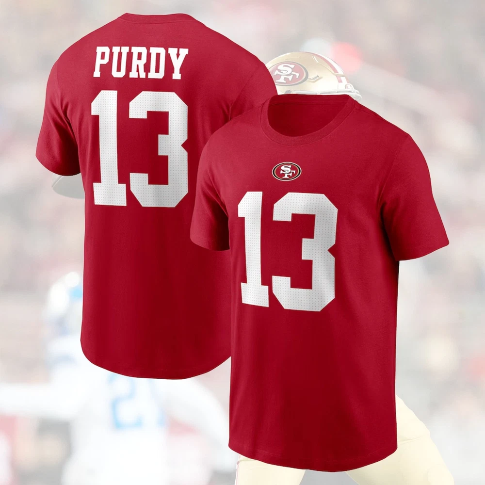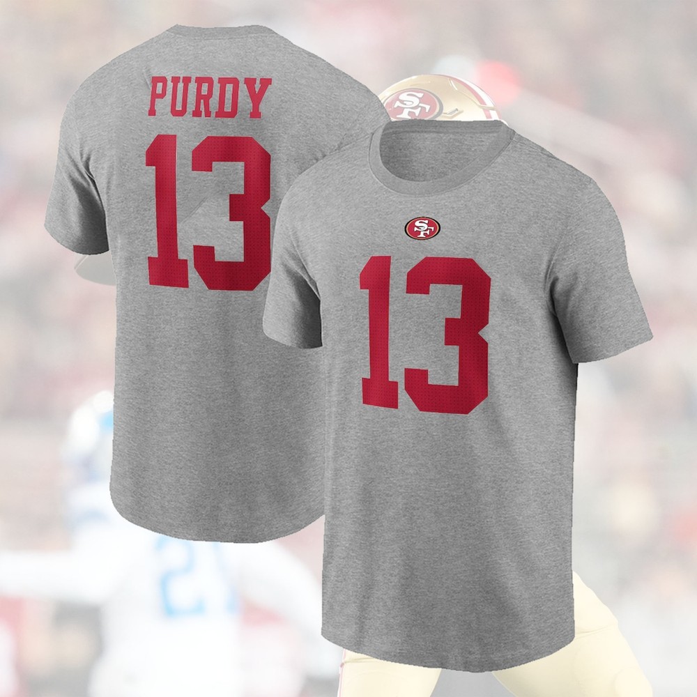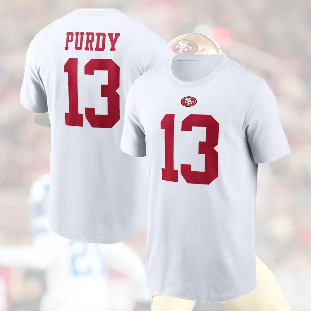 HOT HOT! Brock Pur.dy #13 San Fran.cis.co 49ers 2025 Name & Number Gift For Fans Classic fit • Gildan Reprint T-Shirt US – Tag: Gildan • 100% Cotton (fibre content may vary for different colors) • Light fabric (5.3 oz/yd² (180 g/m²)) • Tear away label • Runs true to size This heavy cotton tee has the classic cotton look and feel. Casual elegance will make it an instant favorite in everyone's wardrobe. 100% Open end cotton Environmentally-friendly manufactured cotton that gives thicker vintage feel to the shirt. Long lasting garment suitable for everyday use Without side seams Knitted in one piece using tubular knit, it reduces fabric waste and makes garment more attractive Ribbed knit collar without seam Ribbed knit makes collar highly elastic and helps retain its shape Shoulder taped Twill tape covers the shoulder seams to stabilize the back of the shirt and to prevent stretching Machine wash: warm (max 40C or 105F) Non-chlorine: bleach as needed Tumble dry: medium Do not iron or dryclean