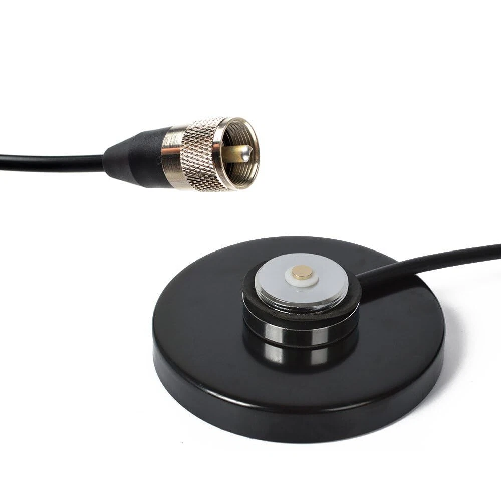 NMO Connection Style Dimensions: Height: 30mm/1.18" Base Diameter: 90mm/ 3.54" Diameter:90MM Suction:14kg (About 30.8lbs) Cable: RG-58(5m about 16.4ft) PL-259 Connector on end of cable Size 3.54" Magnetic Base Pull Strength 30.8 lbs Product Description Super Strong Magnet Mount with PL-259 (UHF male) Description Magnetic mount. Packing includes: 1* TC-MB90 Magnetic Base with 5m about 16.4ft RG-58 cable(Not include Antenna) NMO Connection Style W/5M(16.4ft) RG58 Coaxial Cable PL-259 Plug NMO Mount Magnetic base:Height: 30mm/1.18";Base Diameter: 90mm/ 3.54" Size 3.54" Magnetic Base Pull Strength 30.8 lbs Suitable for all kind of NMO antenna and SO239 mobile radio The magnetic base Easy to install, plug and play installation.