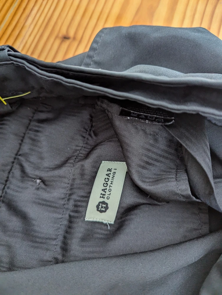 MPN: n/a Suspender Buttons/Belt Loops: Belt Loops Pattern: Solid Brand: Haggar Features: Pockets, Stretch Personalize: No Closure: Button/Zipper Year Manufactured: 2010-2019 Size: 44 Fabric Type: Canvas Handmade: No Department: Men Fabric Wash: Light Inseam: n/a Pocket Type: 5-Pocket Design Character: Haggar Cool 18 PRO Color: Black Occasion: Casual Distressed: No Accents: Zipper Rise: Mid (10-12 in) Fit: Regular Garment Care: Machine Washable Character Family: Haggar Cool 18 PRO Season: Fall, Spring, Summer Vintage: No Size Type: Regular Front Type: Flat Front Model: Haggar Product Line: Haggar Theme: American Country/Region of Manufacture: Bangladesh Style: Chino Material: Polyester Waist Size: n/a
