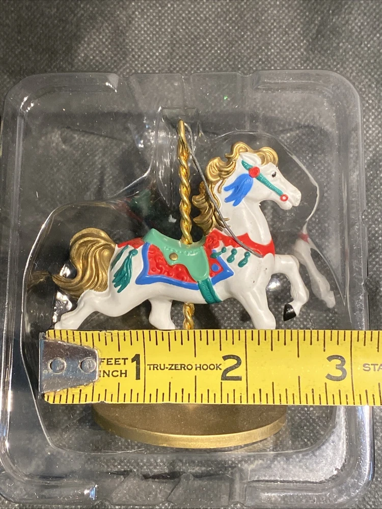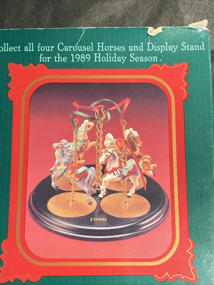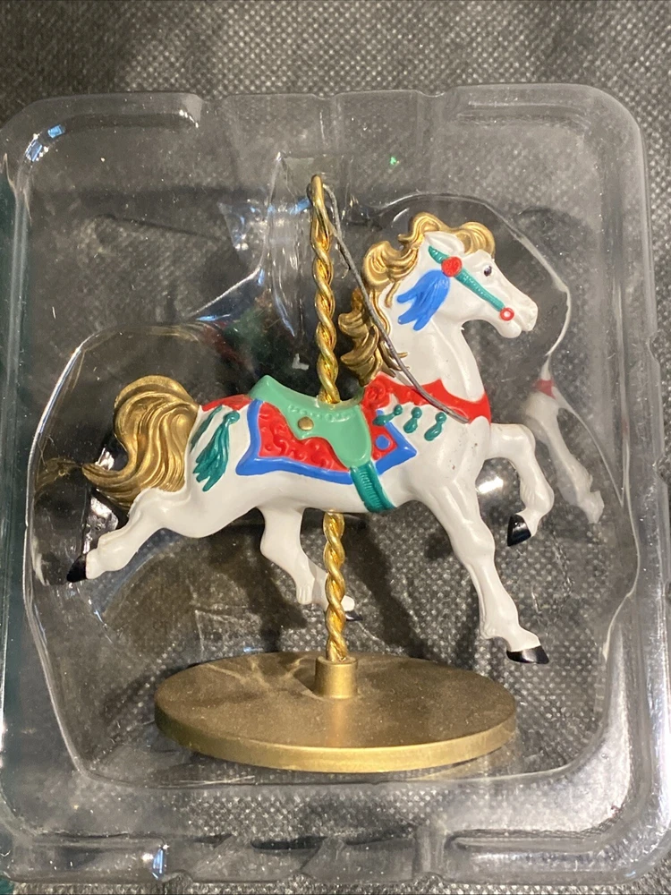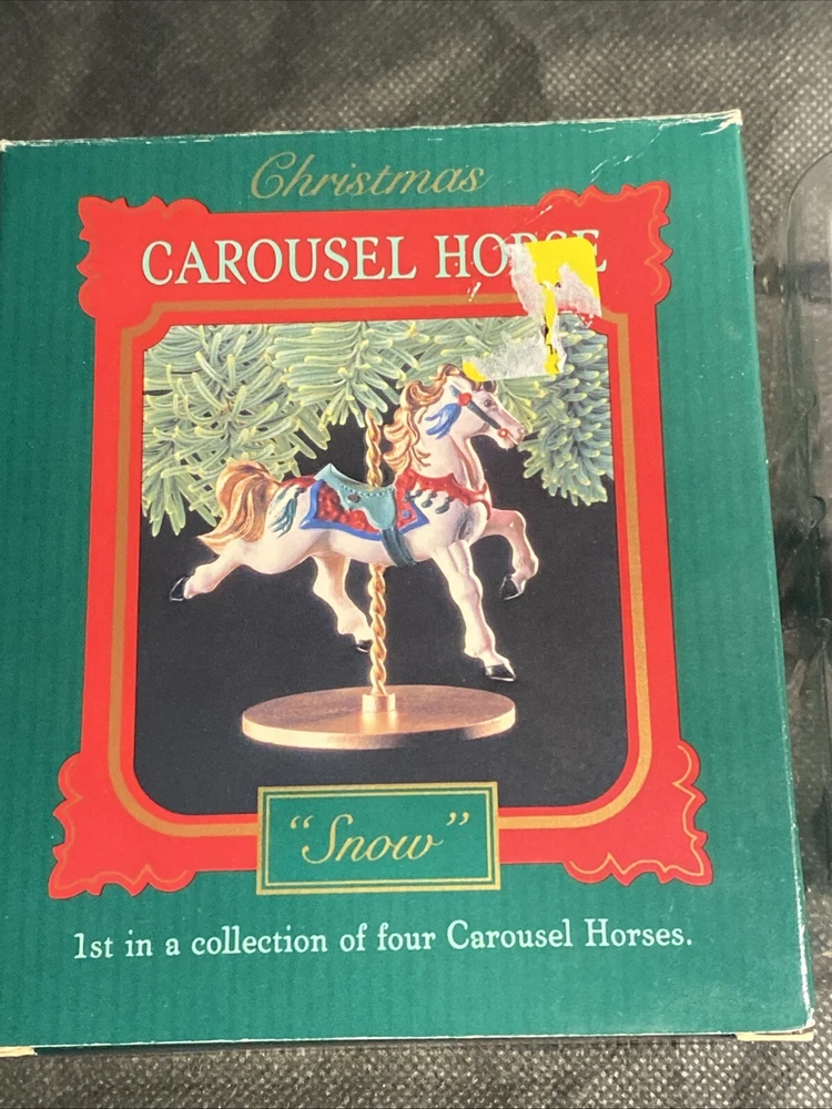 Hallmark Keepsake 1989 Carousel Horse”Snow” Ornament In Original Box. Condition is Used. Shipped with USPS Ground Advantage.