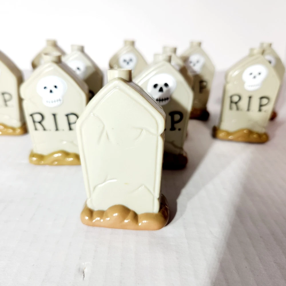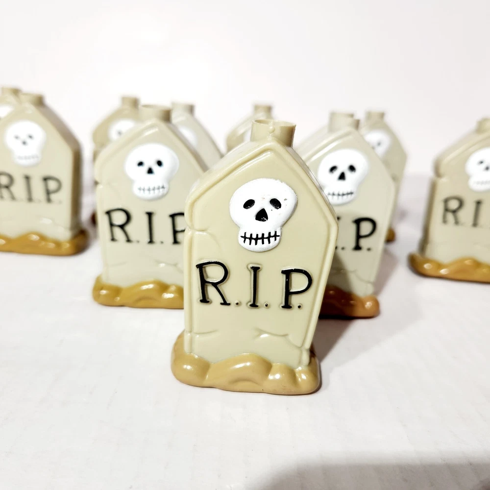 Halloween Blow Mold Decorative Light Covers Spooky Seasonal RIP Skull Horror 12 Some covers have pushed in corners and one is cracked, as pictured. Light overs only. Lot of 12. Please thoroughly review photos for quality and condition of item.