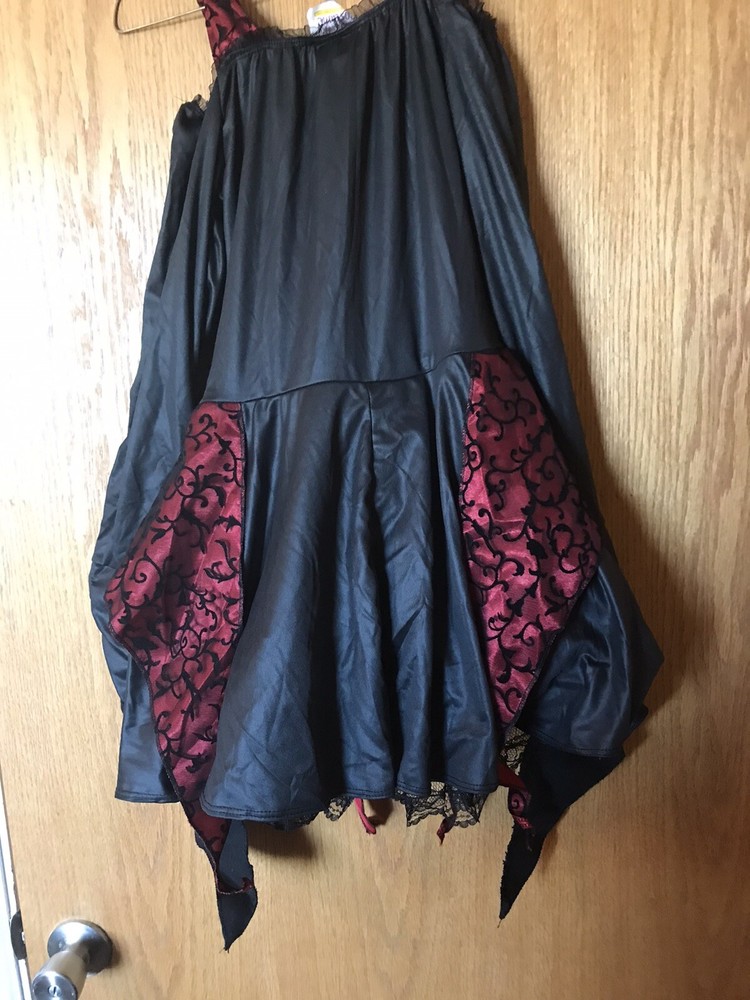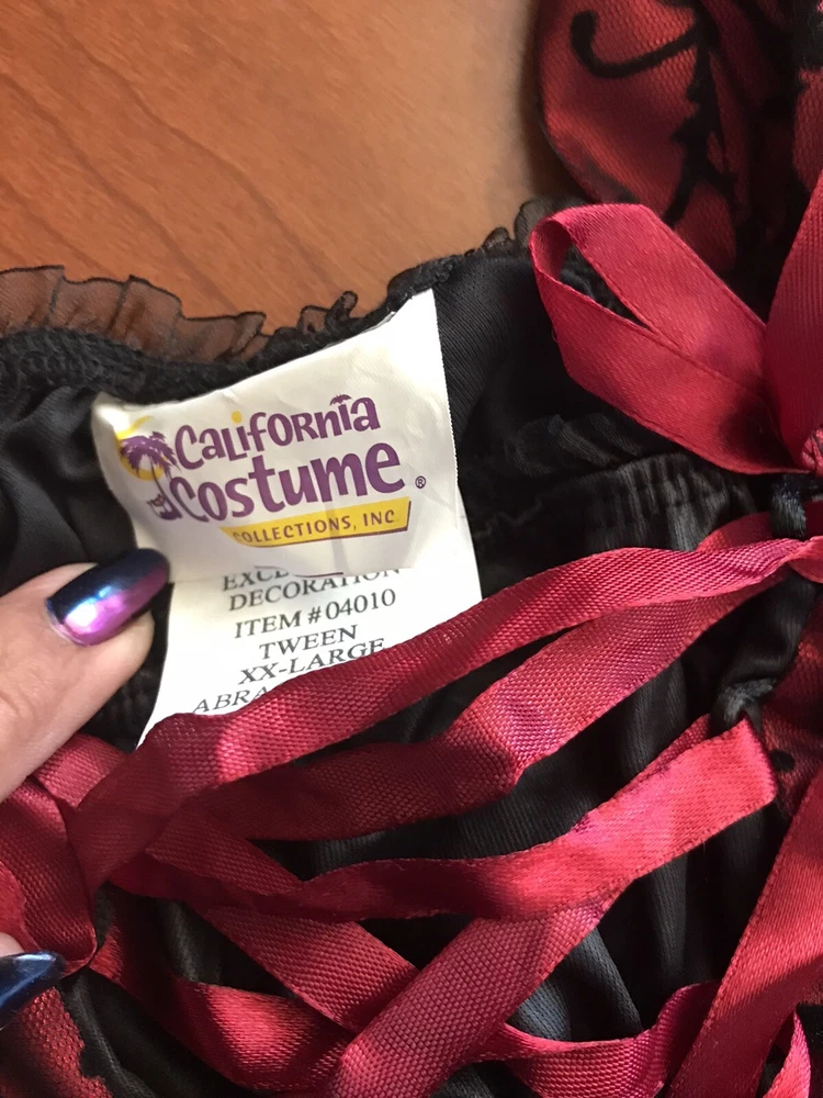 Halloween California Costume Abracadabra Lace-Up Dress Sz Tween X X-Large. Full length sleeves. Last picture is a stock picture for example only. It DOES NOT come with any accessories, only the dress! Dress with attached petticoat Could be used for a witch, devil, vampires etc whatever you can imagine. See all pictures as they are part of the description You get the actual item pictured Sz Tween XXL