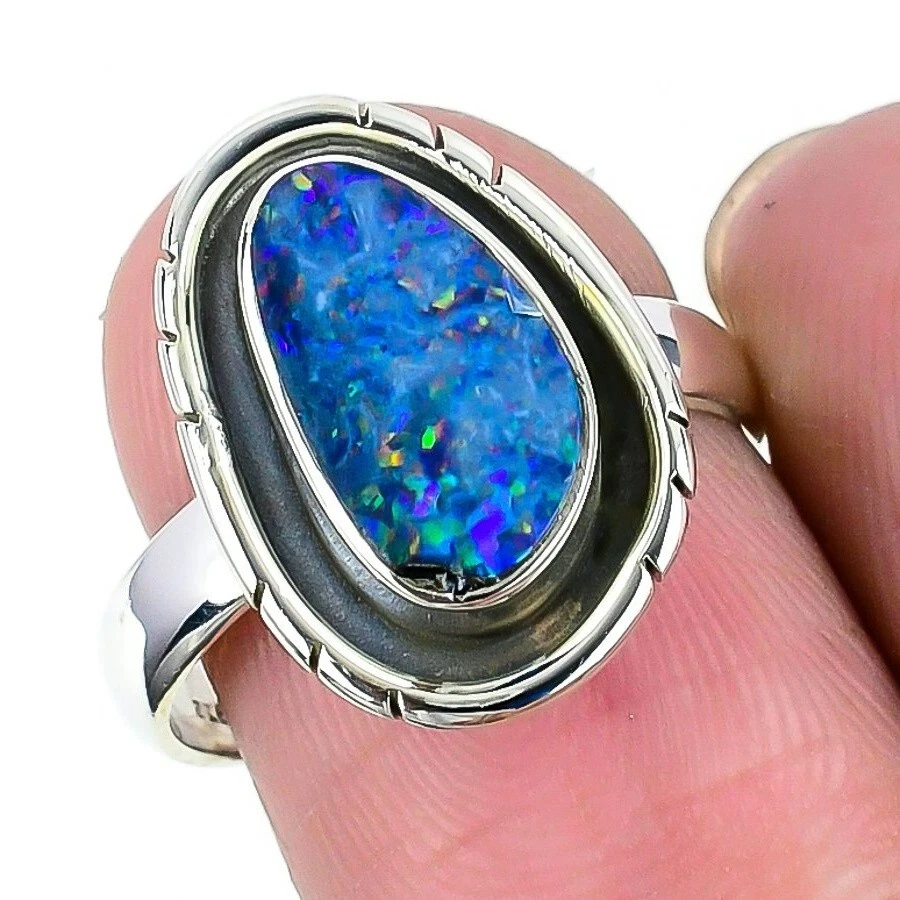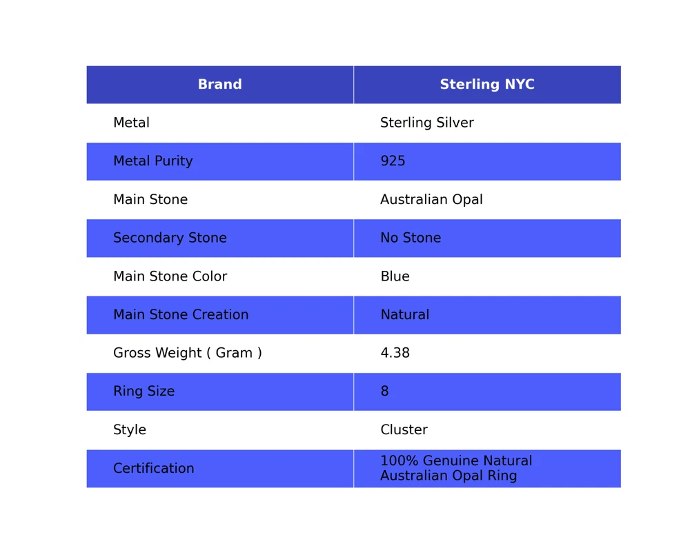 Welcome to Sterling NYC Natural Australian Opal Gemstone 925 Silver Cluster Ring Size 8 For Women Handmade Ring, Sterling Silver Ring, Australian Opal Ring, Handcrafted Ring Specifications:- SKU : JS-63681 Gemstone : Australian Opal Stone Shape : As Seen In Picture Metal Purity : 925 Sterling Silver Ring Size : 8 US Adjustable : ----------------------------------------------------------------------------------------------------- Experience the timeless allure of silver jewelry, a cherished choice known for its exceptional properties and countless rewards. Explore the captivating charm of its unique attributes, enveloping you with elegance and remarkable healing qualities. Immerse yourself in the enigmatic world of silver, where beauty and benefits harmoniously intertwine. Benefits: Embrace the Elegance : Silver jewelry seamlessly blends accessible luxury with timeless beauty, elevating any jewelry collection without the need for extravagant spending. A Mindful Companion : Adorn yourself with silver jewelry as a gentle nudge towards mindfulness, a tangible reminder to cherish the beauty of every moment. Amplify Positivity : Silver, known for its energy-conducting qualities, is thought to enhance the power of positive intentions and affirmations, aiding in the clear manifestation of your desires. Unleash Self-Expression : Silver jewelry, with its versatile designs, empowers individuals to express their unique style, allowing their personality to shine through every piece. Soothing Serenity : Silver's cooling properties are believed to have a therapeutic effect, bestowing a sense of relief and tranquility upon both body and mind. ----------------------------------------------------------------------------------------------------- For Mother's Day Gift For Father's Day Gift For Promise For Valentine' Day For Halloween Party For Christmas Day Gift For New Year Party For Mom For Her ----------------------------------------------------------------------------------------------------- Discover the impeccable designs tailored just for you, and receive personalized guidance by reaching out to us. Our skilled artisans meticulously handcraft each piece in our workshop, infusing them with love and unwavering attention to detail. Your visit holds immense significance to us, and we are committed to ensuring that your shopping experience is nothing short of exceptional. Thank you for choosing us; we sincerely hope you thoroughly enjoy your shopping journey. Happy shopping! ----------------------------------------------------------------------------------------------------- At SterlingNYC, exquisite craftsmanship meets premium sterling silver gemstone jewelry. Our handcrafted pieces reflect authenticity and uniqueness, a testament to our commitment to excellence. Explore our collection and create your own dazzling jewelry ensemble.