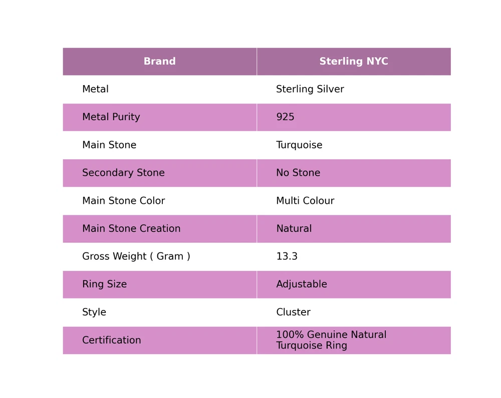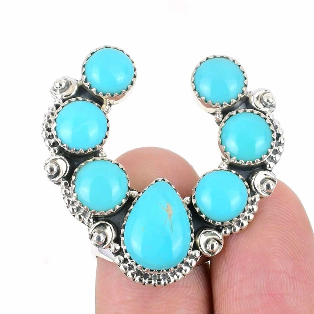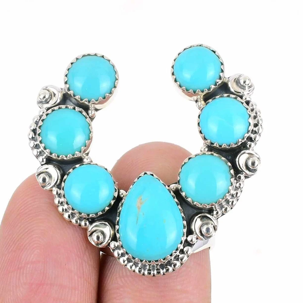 Welcome to Sterling NYC Gift For Women Cluster Adjustable Ring 925 Silver Natural Turquoise Gemstone Handmade Ring, Sterling Silver Ring, Turquoise Ring, Handcrafted Ring Specifications:- SKU : MX-686 Gemstone : Turquoise Stone Shape : As Seen In Picture Metal Purity : 925 Sterling Silver Ring Size : Adjustable US Adjustable : Yes ----------------------------------------------------------------------------------------------------- Experience the timeless allure of silver jewelry, a cherished choice known for its exceptional properties and countless rewards. Explore the captivating charm of its unique attributes, enveloping you with elegance and remarkable healing qualities. Immerse yourself in the enigmatic world of silver, where beauty and benefits harmoniously intertwine. Benefits: Embrace the Elegance : Silver jewelry seamlessly blends accessible luxury with timeless beauty, elevating any jewelry collection without the need for extravagant spending. A Mindful Companion : Adorn yourself with silver jewelry as a gentle nudge towards mindfulness, a tangible reminder to cherish the beauty of every moment. Amplify Positivity : Silver, known for its energy-conducting qualities, is thought to enhance the power of positive intentions and affirmations, aiding in the clear manifestation of your desires. Unleash Self-Expression : Silver jewelry, with its versatile designs, empowers individuals to express their unique style, allowing their personality to shine through every piece. Soothing Serenity : Silver's cooling properties are believed to have a therapeutic effect, bestowing a sense of relief and tranquility upon both body and mind. ----------------------------------------------------------------------------------------------------- For Mother's Day Gift For Father's Day Gift For Promise For Valentine' Day For Halloween Party For Christmas Day Gift For New Year Party For Mom For Her ----------------------------------------------------------------------------------------------------- Discover the impeccable designs tailored just for you, and receive personalized guidance by reaching out to us. Our skilled artisans meticulously handcraft each piece in our workshop, infusing them with love and unwavering attention to detail. Your visit holds immense significance to us, and we are committed to ensuring that your shopping experience is nothing short of exceptional. Thank you for choosing us; we sincerely hope you thoroughly enjoy your shopping journey. Happy shopping! ----------------------------------------------------------------------------------------------------- At SterlingNYC, exquisite craftsmanship meets premium sterling silver gemstone jewelry. Our handcrafted pieces reflect authenticity and uniqueness, a testament to our commitment to excellence. Explore our collection and create your own dazzling jewelry ensemble.