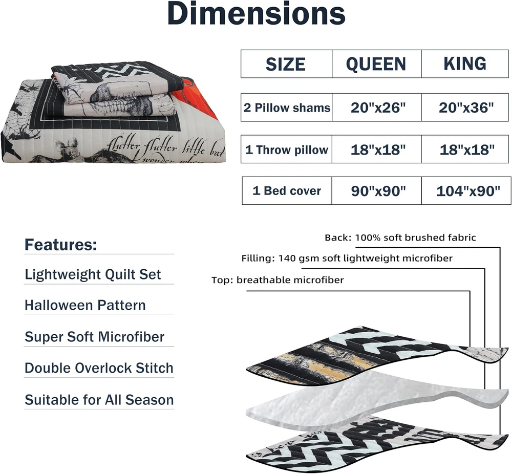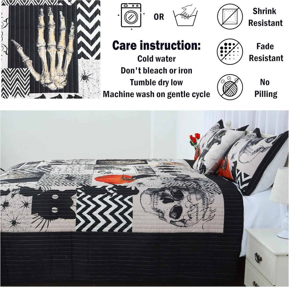 Fast Shipping Great Customer Support Satisfaction Guaranteed DESCRIPTION Shipping Shipping Shipping All domestic packages are shipped for Free (Unless other shipping method was selected during the checkout) Most items ship and arrive much sooner than the estimate delivery date. Usually within 2-3 days from payment. However, we have longer estimates to compensate for the occasional delay or supply chain breakdown. We do not accept P.O. BOXES - PLEASE PROVIDE A PHYSICAL ADDRESS Return Return Return In the event that you would like to return your purchase, we allow returns that are processed within the defined return date (the return date is to be found in the return policy/shipping and handling section) Please contact us for a return authorization and the return shipping address. Payment Payment Payment PayPal is our preferred method of payments it's the quickest, easiest and most secure way to pay for your goods or services online. PayPal offers buyer and seller protection should there be a problem. If you do not have a PayPal account, to get started and buy your first item with us is very easy. Simply click on the 'Buy It Now' button and follow the eBay checkout steps. Select PayPal as the payment method you then will be given the chance to enter your card details in to PayPal's secure checkout in order to pay for your order. Once the payment has been made, you will then be given the opportunity to make your own PayPal account to make paying for your items in the future very easy. Should there be a problem with payment please do let us know. Feedback Feedback Feedback Customer satisfaction is very important to us. If you have any problem with your order,please contact us and we will do our best to make you satisfied, please do not leave a negative feedback before we resolve your problem. We guarantee that your issue will be solved quickly. As long as you are happy with your purchase of , please leave us a positive feedback. Your feedback is very important to us it affects our search placement on eBay. We will leave a positive feedback for you in return automatically once we receive your feedback. Contact Us Contact Us Contact Us If you have any queries, please contact us via ebay. We usually respond within 24 hours on weekdays. Thank you for visiting our ebay store! šćDelicate Halloween Designć: Exquisite reversible stitching technology and classic print are the features of the bed cover set. The design of dark elements, ghosts, cats, pumpkin patterns, will all be in line with the festival theme. This quilt set is the perfect match for Halloween home decorations. šćSoft & Comfortableć: Shell: 100% soft lightweight fabric; filling: 100% Polyester. The design of a quilt creates a cozy and durable state, so it will soften after washing without clumping and shifting. šćSize & Measurementć: The king size Halloween decorative bedding sets includes 1 quilt: 104"x 90"; 2 pillowcases: 20"x 36";1 throw pillowsham:18"x 18". We kindly suggest that you measure your bed before purchasing. šćEasy Careć: Machine wash cold on gentle cycle and tumble dry low. Do not iron or bleach. šćAfter-sales Serviceć: Please feel free to contact us if you have any questions about our products. We will try our best to solve the problem as soon as possible. Halloween Pumpkin Ghost Black Quilt Set Queen 4 Piece Coverlet 90x90 Click here to see description Fast Shipping Great Customer Support Satisfaction Guaranteed DESCRIPTION Shipping All domestic packages are shipped for Free (Unless other shipping method was selected during the checkout) We ship within two business days of payment, usually sooner Standard FREE shipping takes between 3-5 business days Expedited shipping takes between 2-3 business days Overnight shipping takes between 1-2 business days We do not accept P.O. BOXES - PLEASE PROVIDE A PHYSICAL ADDRESS We Ship Globally using ebay's GSP, the item is sent to a logistic center in KY and shipped from there to the rest of the world. International customers are responsible for all duties and taxes Contact your local authority for questions related to the amount of duties or taxes you will be responsible for Return In the event that you would like to return your purchase, we allow returns that are processed within the defined return date (the return date is to be found in the return policy/shipping and handling section) Please contact us for a return authorization and the return shipping address. Please contact us for a Return Merchandise Authorization (RMA) number. We advise you to use a reputable carrier service when returning your goods. Please pack all returns appropriately. We ship globally Via eBay's global shipping program (GSP). Thus we don't cover returns for items shipped globally. Buyers returning such items will be refunded ONLY for the item's cost and not for the shipping. please check the Voltage information and make sure it matches the one in your country. In case it's not stated in the description, do ask us. Payment PayPal is our preferred method of payments it's the quickest, easiest and most secure way to pay for your goods or services online. PayPal offers buyer and seller protection should there be a problem. If you do not have a PayPal account, to get started and buy your first item with us is very easy. Simply click on the 'Buy It Now' button and follow the eBay checkout steps. Select PayPal as the payment method you then will be given the chance to enter your card details in to PayPal's secure checkout in order to pay for your order. Once the payment has been made, you will then be given the opportunity to make your own PayPal account to make paying for your items in the future very easy. Should there be a problem with payment please do let us know. Feedback Customer satisfaction is very important to us. If you have any problem with your order,please contact us and we will do our best to make you satisfied, please do not leave a negative feedback before we resolve your proble