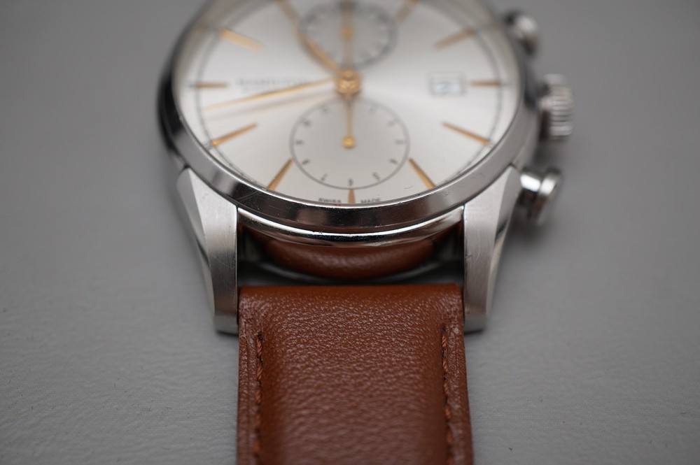 For sale is a Hamilton American Classic H32416581 Spirit Of Liberty Automatic Chronograph Watch Movement: Mechanical (Automatic) Condition: Used Strap: Aftermarket leather. Original leather/deployant clasp are included but is deteriorating from age/wear. Box: Original, some deterioration inside from age. Warranty card: Stamped 2014.7.5 Manual: Yes Approximate measurements: Case diameter: 42mm (excluding crown) Lug width: 22mm Lug to lug: 52mm Thickness: 14.75mm Please inspect all product photos in detail prior to purchase. Item does not include accessories beyond what is described and photographed.