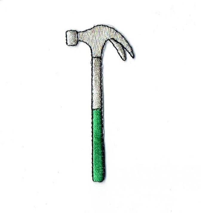 1 Iron-On Embroidered Applique : Hammer measures 1-1/4" x 2-3/4" (3.1cm x 6.99cm)