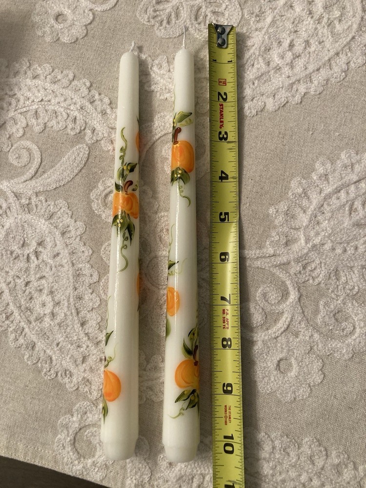 Hand Painted Pumpkin 10 inch taper candle set of 2, unscented