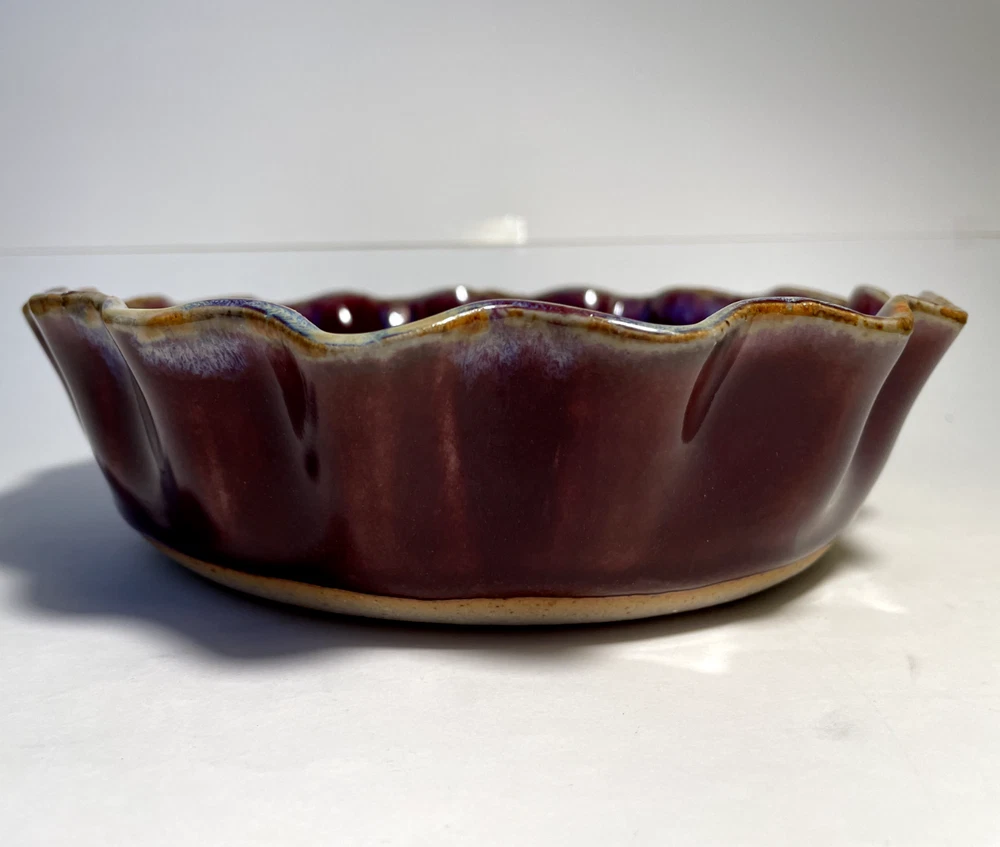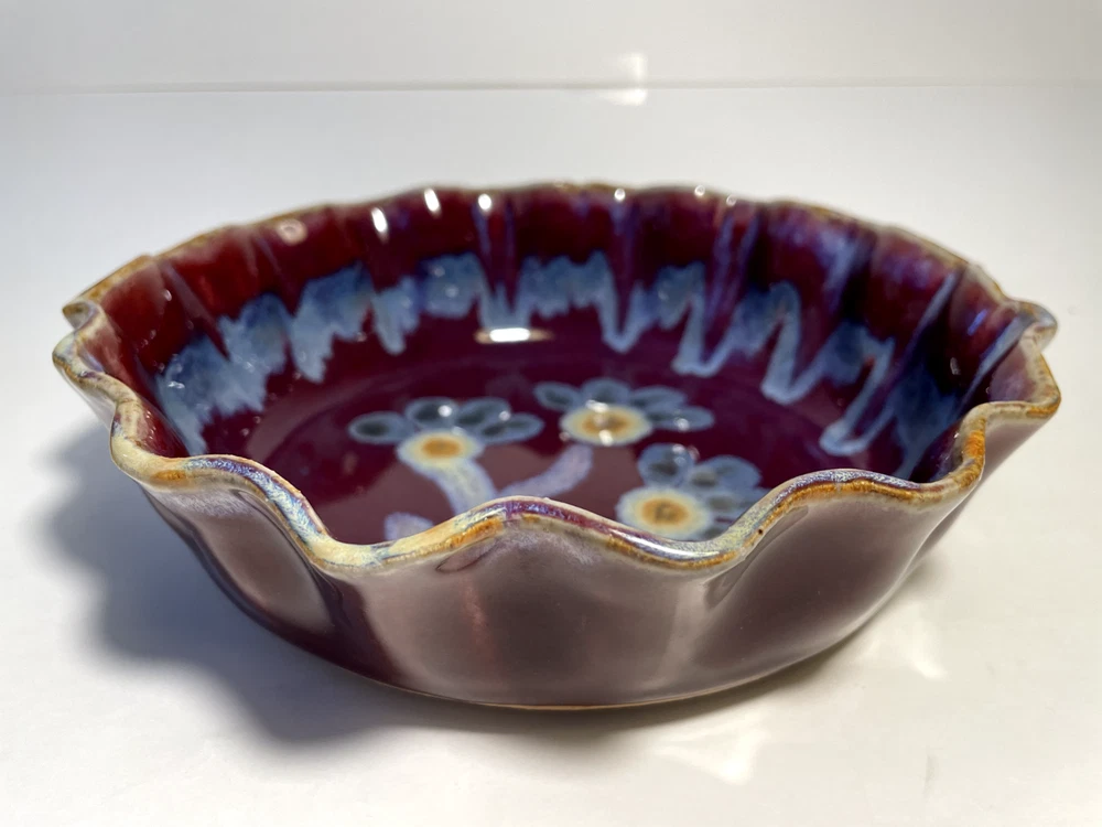 This beautiful round pie dish is a true masterpiece of studio pottery. It features a hand-painted multicolor floral design that is sure to add a touch of elegance to any dessert table. Measuring 8 inches in diameter and 2 inches in depth, this piece is perfect for serving up your favorite pies, quiches, or tortes. Crafted from high-quality ceramic and signed by the artist, this pie dish is an original piece that is sure to impress. Its vintage look and feel make it a great addition to any collection, while its durable surface coating ensures that it will last for years to come. Whether you're a collector or a baker, this Hand Painted,Studio Pottery, Signed, Floral Quiche,Pie,Torte is a must-have item that is sure to delight.