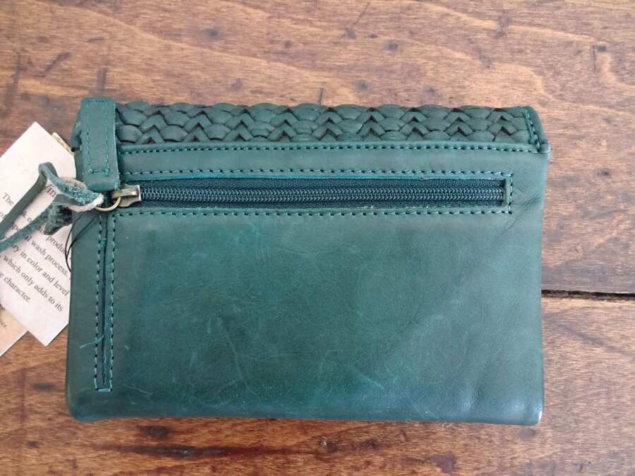 This gorgeous dark green woven leather wallet is a must-have! The soft leather feels luxurious, and the vintage-inspired design adds a unique touch. It’s surprisingly spacious—plenty of slots for cards, cash, and even a zippered coin pouch. The craftsmanship is outstanding, and the snap closure keeps everything secure. Perfect for everyday use or special occasions. Absolutely love it!