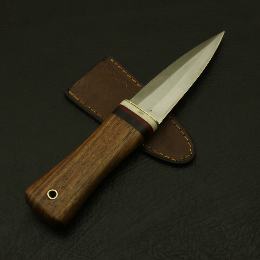 Beautiful Handmade Steel Sgian Dubh Scottish Dirk Knife/ Sheath If you’re looking for a fixed blade Dirk knife that will be a reliable companion, look no further! This knife epitomizes the bold. The main qualities that make it great: sturdiness, sharpness, and looks. The ergonomic design is easy to hold and carry with the included leather sheath. Great for survivalists, tactical personnel, outdoors-men or anyone who appreciates fine craftsmanship and an amazing blade. . The blade is stainless steel, single edged, and razor sharp. It's sturdy enough to last through even the harshest conditions. The handle is beautifully polished, with real bone grips. Designed to feel comfortable and natural in the hand. Even in different conditions, you'll feel confident that the knife will stay firmly within your grasp. Included with the knife is a genuine leather It's brand · Overall Length: 8” · Blade Length: 4” · Handle Length: 4” Handle is made of wood/rose/Pakka/ Complimentary gift messages *Gift wrapping service available for minimal additional fee ADD ONS: *Custom orders for 10 or more pieces. You can choose & submit your own handle or design. LIFETIME WARRANTY No premium knife is complete without a lifetime warranty; our masterpiece knife is fully covered for life, We do sell wholesale, please contact us for special discounts on bulk orders. FEEDBACK POLICY: YOUR FEEDBACK IS VERY IMPORTANT FOR US, IF THEIR IS ANY KIND OF PROBLEM PLEASE GIVE US OPPORTUNITY TO SORT THE ISSUE