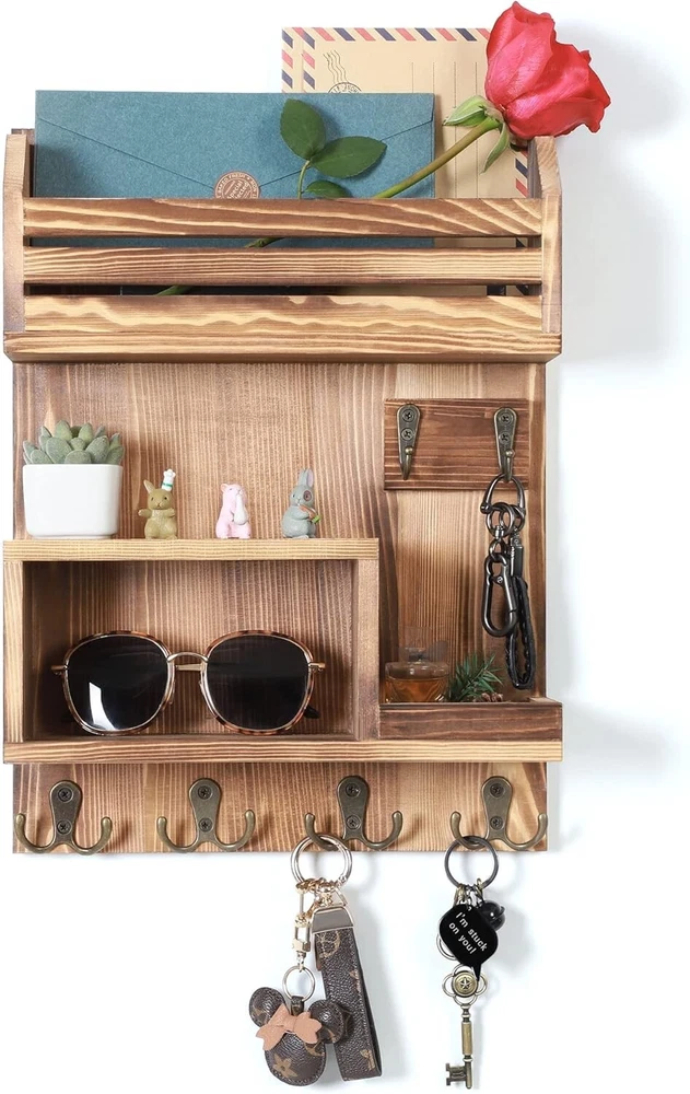 Just got this organizer and it’s a game-changer! The premium pine wood adds rustic charm while the bronze hooks stay sturdy even with heavy bags. Love how it keeps keys and mail neatly in place—perfect for entryway organization. Handcrafted details make it a standout piece!
