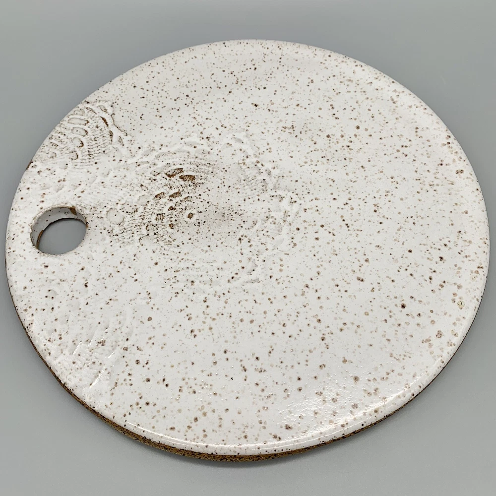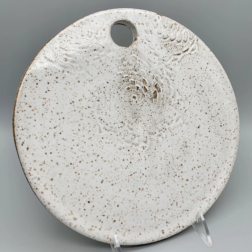 For your consideration is this beautiful and functional handmade art pottery embossed wall hanging cheese or charcuterie board! Item Dimensions: 9.75" diameter This piece is in excellent condition with no chips or cracks, but please see the photos as minor glaze skipping is noted. All packages ship USPS with tracking included. If you would like to request alternate shipping, please contact us prior to purchase. ~ Hello there, At Devsea Collectibles, our mission is to bring unique vintage finds to the everyday home, regardless of style or budget. You can browse our full selection of hand-picked vintage and antique merchandise here: https://www.ebay.com/str/devseacollectibles Because of the one-of-a-kind vintage nature of our items, all sales are final, and returns cannot be accepted for items that do not fit your needs. However, we understand things don't always arrive as expected, and we're happy to assist with any issues that may arise. We currently mail orders on Monday, Wednesday, and Friday mornings. Please be aware that packages ordered after 5pm on Thursday may not ship until Monday. We do our best to fulfill orders in a timely manner and appreciate your patience. Best wishes to you all, Dev