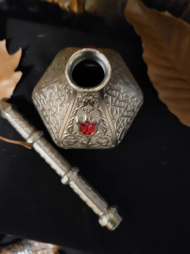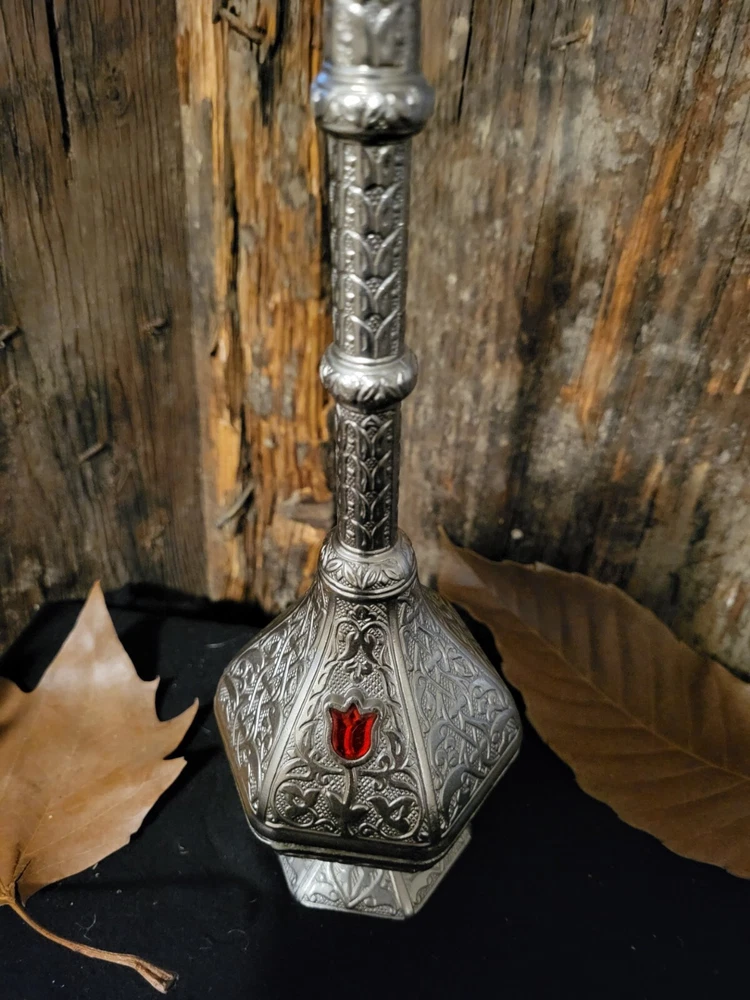 Add a touch of vintage charm to your home decor with this handcrafted silver copper perfume bottle. Inspired by authentic Moroccan design, this antique piece is a perfect addition to your collection of decorative accessories. The metal bottle features a unique design that is both elegant and functional. It is ideal for storing your favorite scents or essential oils. Crafted with care, this perfume bottle is a true masterpiece. It is perfect for those who appreciate the beauty of vintage items and want to add a touch of history to their collection.
