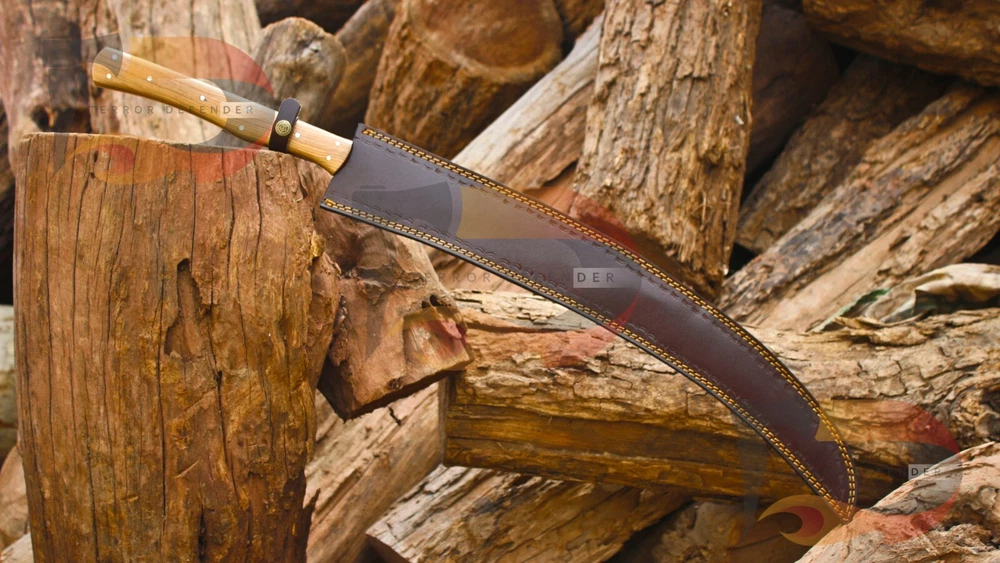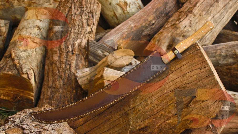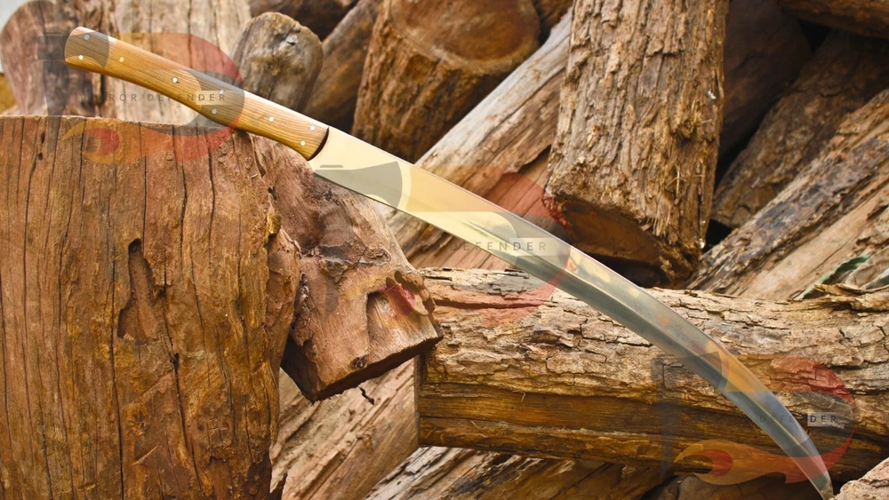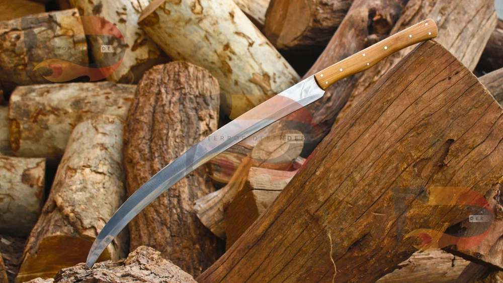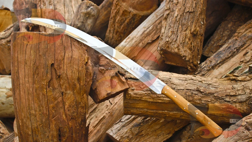SIZE & MEASUREMENTS: Overall length is 33.0" Blade length is 23.0 inches Blade thickness is 5.0mm Handle Materials: Rosewood COMPLIMENTARY SERVICES & ADD ONS: *Complimentary genuine leather hand stitched sheath *Complimentary keen & precise re-sharpening prior to shipping *Complimentary gift messages *Complimentary personalization & engraving available up to 10 characters. *Gift wrapping service available for minimal additional fee *Personalization & engraving above 10 characters available for minimal additional fee *Custom orders for 10 or more pieces. You can choose & submit your own handle or design. ATTRIBUTES & FEATURES: 【HAND FORGED DAMASCUS STEEL】 Manufactured with ultra-sharp hand forged Damascus steel cutting core at HRC58-60 hardness, this knife comes with unrivaled performance and incredible edge retention; Damascus steel outperforms high carbon steel in durability and is easier to sharpen as mix of high chromium steel enhance the other alloying elements. 【ERGONOMIC & WELL-BALANCED】 and wedge blade is light weight and compliments the handle in maintaining balance and help to alleviate fatigue and pains on your fingers after use with comfort while providing you with the perfect blend of performance and comfort. 【ULTIMATELY DURABLE HANDLE】 The meticulously constructed handle has gone through special treatment, making it extremely impervious to heat, moisture, cold with military grade strength and life-long sturdiness; multiple times riveted for extra resilience, 【SUPERIOR SHARPNESS】 Ruthlessly sharp edge is handcrafted by seasoned artisans to a mirror polish at 12-15° per side using the traditional 3-step honing method; Nitrogen cooled for ultimate hardness, flexibility and performance. This knife looks great in the sheath or on a belt making it easy to retrieve. It has the perfect sharpness to make your everyday utilitarian tasks an enjoyable experience. Perfect for hunting, fishing, hiking, camping, boating, backpacking, or any other outdoor adventure. It is also a key item to add to your survival tactical gear! We do sell wholesale, please contact us for special discounts on bulk orders. FEEDBACK POLICY: YOUR FEEDBACK IS VERY IMPORTANT FOR US, IF THEIR IS ANY KIND OF PROBLEM PLEASE GIVE US OPPORTUNITY TO SORT THE ISSUE