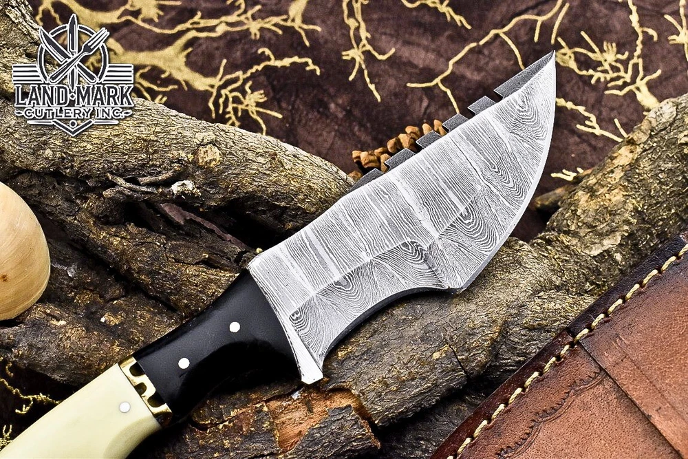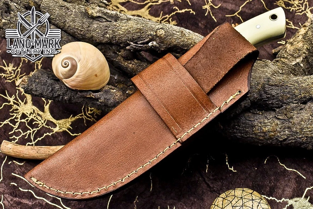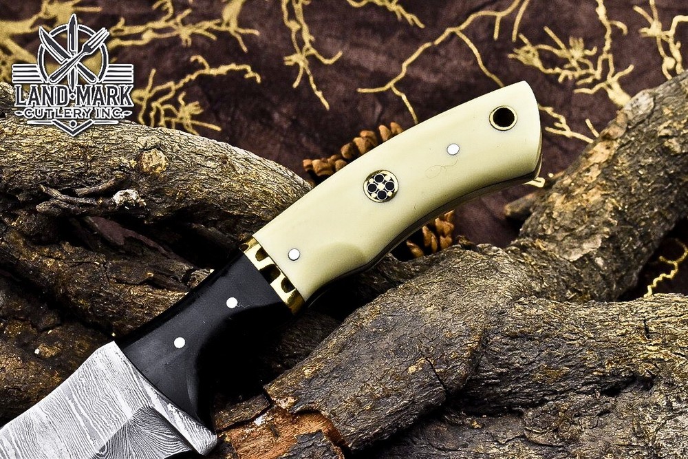 Custom Hand Made DAMASCUS STEEL HUNTING TRACKER KNIFE WITH MASLA SHEET AND BONE BOLSTER HANDLE We offer a shipping discount for More then one purchased . And discount will be apply on combine invoice, Discount will not apply on separate payment. ITEM DETAILS OVER ALL LENGTH 9.0 inches long (Approx) HANDLE LENGTH 4.5 inches long (Approx) BLADE LENGTH 4.5 inches long (Approx) BLADE HARDNESS 58-60 HRC Which Holds The Sharp Edge For Long Time. HANDLE BONE AND SHEET COVER LEATHER SHEATH This Awesome custom made KNIFE has a nice hand forged with the combination of 4340 & 1080 steel. HOW OUR DAMASCUS IS MADE: All our Damascus is real and not just an acid etch. Damascus is a mixture of 1080HC and 4340 nickel carbon. You heat them up together and then fold the bar over and over to get the desired layers, ours are 396 layers. Then you burn the blade in acid, and it turns the nickel satin color and the high carbon turns blackish gray. This is how the layers are exposed to show the layers of the new steel created coined "Damascus". All Damascus is acid etched to show the layers. If you high polish the metal it will be shinny satin like all steels. Only after you burn the sides of the blade with acid do you see the layers of the two steels. Makes sense? After we make our knives we high polish the handles and put an edge on the blade. The high polishing buffs off the acid burned layer of the handle, and the blade edge is sharpened and the acid burned edge becomes satin. You can re-burn the tang of the blade near the handles and the edge of the blade and it will show the layers once more. All our knives are hand made, durable and unique ***** YOU WILL RECEIVED THE SAME KNIFE Qality Standards Our Damascus blades are made from high quality non-stainless steels which rival or exceed any Damascus blade made from the 10 series with 4340. Our Damascus combination has taken years to perfect and has been tested under a variety of application which will offer professional performance in categories of toughness, strength (lateral stress) and edge honing and holding ability. In a 5 spot Rockwell test our blades will average near or close to 58 which offers a perfect balances between its toughness and strength.Our blades due to carbon content need to be regularly treated with wax and/or 3 in 1 oil to maintain its superior quality. Questions if you have any question feel free to send us message we aim to answer all questions within 24 hours Feedback If you are not satisfied with our service please contact us before leaving any negative or natural feedback. We will resolve all issues as quickly as possible. Disclaimer We are not responsible for any injuries associated with the use of our tools. Our products are intended for legal use only by responsible buyers. Therefore, we will not sell our products to anyone under the age of 18. Before bidding please check your country laws as some countries Custom don't allow this. If your purchase is held by Custom Authorities in your country/State we will not be responsible for that and no refund will be issued Shipping We offer a 20% shipping discount for More then one purchased . And discount will be apply on combine invoice, Discount will not apply on separate payment We ship within 24 hours after receiving complete payment but this can be delayed due to week ends or Governments and Religious Festivals . . This is beyond our control and we apologize for this inconvenience. Precautions Our Tools are very sharp so open and use them very carefully We are not responsible for any injuries associated with the use of our tools Tips to Care knife 1. NEVER STORE YOUR KNIFE FOR LONG TIME IN LEATHER SHEATH. 2. LEATHER CAN ABSORB WATER, WHICH WILL RUST THE KNIFE. 3. ALWAYS CLEAN THE BLADE AFTER USING WITH OIL OR WAX