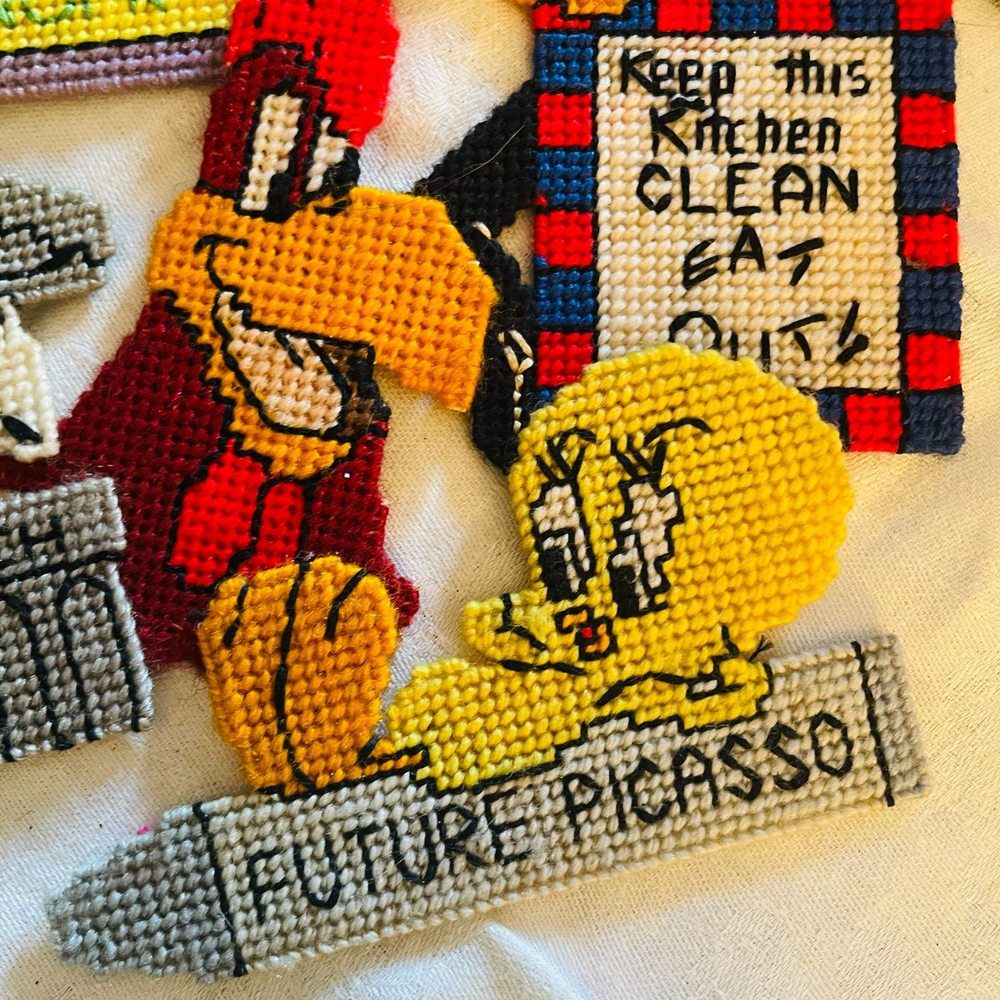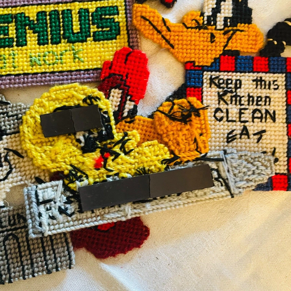 10 Magnets. Fun handmade. Largest measures 5.5" x 6". Smallest measures 3" x 3". Many are dirty and could use a cleaning. Fun wording. Please use pictures as an inclusive part of the description. Colors can vary on monitors. Sold as shown. Happy to combine shipping with other items currently listed. We are celebrating 25 years on eBay and are happy to offer many varied items for collectors and consumers alike. New items listed daily.