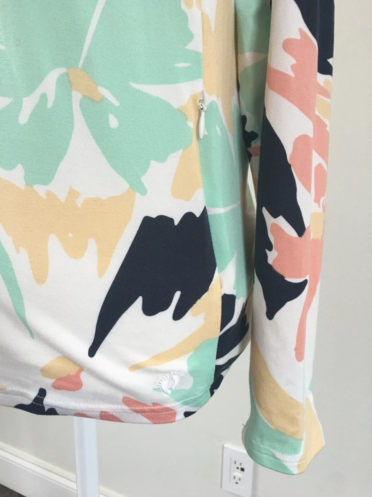 This Hang Ten women's top is perfect for any casual occasion, whether you're hitting the beach or just running errands. The tee shirt features a round neckline and long sleeves with a casual sleeve type. It is made from a lightweight and stretchy knit fabric, embroidered logo , mini zipped mini pocket aside consisting of spandex and polyamide, that provides UV protection and is easy to care for. The Floral pattern adds a touch of style to the shirt, while the zipper and embroidered accents make it unique. The shirt is available in size S and is machine washable. Condition of the item is Pre-Owned in great shape! Shipped asap by USPS ground advantage mail.