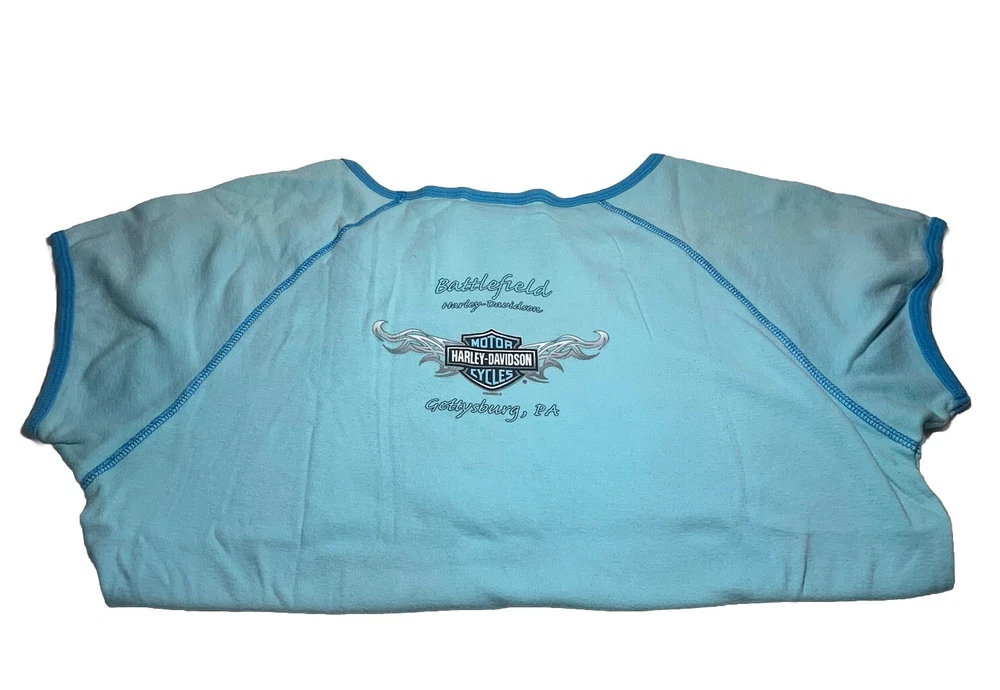 Harley Davidson Womens Shirt Short Sleeve XL Turquoise. Battlefield Harley-Davidson Gettysburg,PA.
