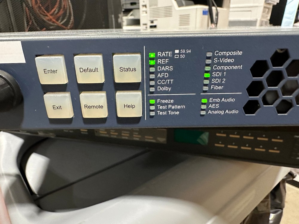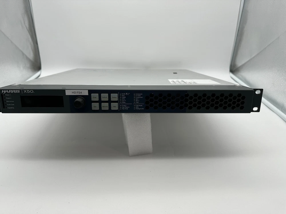 Harris TecNec Selenio X50-AV-2PS Intelligent Frame Synchronizer Converter HD-SDI Pre-Owned - Pulled from a working environment due to a site wide upgrade. FEATURES • Intelligent frame sync/delay, proc amp, noise reduction, clipping and color correction • Rules Engine for custom signal flow management • Line sync and time base corrector (TBC) and “lock to input” modes • 3DTV-capable – Left / Right Eye to frame compatible Side/Side, Top/Bottom output – Frame compatible Side/Side, Top/Bottom input to Left / Right Eye output • Advanced 3D adaptive 10-bit motion detection for up/down/cross/aspect ratio conversion • Two switchable auto-sensing 3G/HD/SD inputs • Up/down/cross/aspect ratio conversion with two simultaneous, independent output formats • Noise reduction (mosquito), sharpness and texture controls • Two aspect ratio converters with full control over H/V size and position • Audio de-embed/embed, sync, gain, invert and delay with 16 channels (four groups) processing – PCM and non-PCM (Dolby® Digital, Dolby® E) passthrough – Options for Dolby® Digital, Dolby® E decode and encode (up to 2 Dolby decod- ers or encoders) – Options for DTS Neural Upmix, Downmix, Multimerge and DTS Neural Loudness Control • Time base corrector for analog composite inputs • Video Interfaces: – Analog composite ° 3D adaptive comb filter 12-bit color decoder – Analog component ° YPrPb input and output (HD and SD) ° RGB output – Auto-sensing for SD-SDI, HD-SDI, 3G-SDI – EDH/CRC error monitoring and insertion – HDMI output for video • Audio Interfaces: – Eight-channel analog audio – Four groups embedded audio – Four AES (75 ohms) inputs • Data and Metadata: – CC (CEA608/708) and Teletext (OP47) – Audio metadata VANC embed/de-embed, generator, serial input/output – AFD/Wide Screen Signaling (WSS)/VI – Pass one DID/SDID when converting video • Control and Monitoring: – 100/100 Ethernet connectivity – SNMP – Built-in web server – Local control panel • CCS™-compliant for use with CCS Navigator™ software: – X85/X75 control panels – NUCLEUS™ and Magellan™ network control panels – CCS Navigator software – Four GPI inputs and outputs • Optional fiber input and output • 3 Gb/s and 3DTV • Built-in video test and audio tone generators • Redundant power supply • Logo generator/inserter • I-Wings side bar insertion when up converting • SD memory card for presets [What You'll Receive] You will receive the item exactly as pictured and described in the title if there is no special instructions. [Physical Condition] The item is in good physical condition. We encourage you to thoroughly examine all the provided pictures. [Working Condition] The item is in good working order. [Warranty (days)] For both "Used" and New" items, we offer a 30-day warranty. No warranty on "for parts or not working " items. **PLEASE READ!**: Message us before you open a eBay return case. Opening a return case negatively affects a seller's rating. If you have any issues please let us know, We will work quickly to resolve them. CONTACT: We answer emails Monday through Friday 9:30am to 03:30pm. We are closed over the weekends. We ship items out within 3 business days of payment. We do not ship any items out over the weekends. CONDITION DESCRIPTION: WE DO OUR BEST TO TRY AND CATCH ANY AND ALL FLAWS. BUT THINGS DO SOMETIMES GET BY US AND WE ARE SORRY FOR THAT WHEN IT DOES HAPPEN. WE TRY AND TEST TO OUR BEST ABILITY. WE DO LIST FROM WORKING ENVIRONMENT OR A COMPANY STATING TO US THEY WORK, AND SOMETIMES ALL WE CAN DO TO VERIFY IS PLUG AN ITEM IN. WE TRY AND LIST ACCURATELY HOW WE TESTED. WITH ANY ELECTRONICS THEY COULD WORK FOR US AND THEN REBEL AND NOT WORK AFTER SHIPMENT. IN ANY CASE WE TRY AND OFFER AS MANY ITEMS WE CAN AS 30 DAY RETURNS. JUST PLEASE CONTACT US FIRST TO SET UP A RETURN. WE ARE SELLING USED ITEMS SO PLEASE BEWARE THEY COULD HAVE COSMETIC ISSUES OUR HUMAN EYES DID NOT SEE OR CATCH. About Us: We are a Family Owned and Operated e-Waste company located in Massachusetts. We strive to repurpose and reuse all items that come into our facility. We test items to the best of our ability and always explain how much testing was done on an item in the condition description. Third Party International Shipping Companies: If you use a 3rd party International shipping company to get items to your country-please note -there are no guarantees from eBay or Paypal for these transactions. Once the item is delivered to these companies any issues you have at that point you have to file disputes with the shipping company you used. You may contact us prior to getting approval to bid and or buy. thanks Customer Service: If for any reason you feel you cannot leave us 5-star feedback, please contact us so we can make it right. Customer satisfaction is our top priority and is needed to keep our business alive. Please message us prior to leaving feedback or opening a case so we can do our best to resolve whatever issue you have. We want to gain your repeat business. We answer emails Monday through Friday 9:30am to 03:30pm. We are closed over the weekends. We ship items out within 3 business days of payment. We do not ship any items out over the weekends. RETURNS: We have a 30-day inspection period for items described as working and offer returns on most items. We do accept returns in the event your item arrives DOA or is not as described, as long as returns are offered at the time of purchase on the listing. We try to fully examine everything prior to listing and thoroughly describe each item, but sometimes things slip through the cracks, especially when dealing with used merchandise. We do not accept returns on items that have been tampered with or altered in any way. If any items have asset tags those tags must be attached in order to return. SHIPPING: IF FREE SHIPPING OR FLAT RATE SHIPPING IS OFFERED ON AN ITEM, THAT SHIPPING PRICE IS FOR THE 48 CONTIGUOUS 