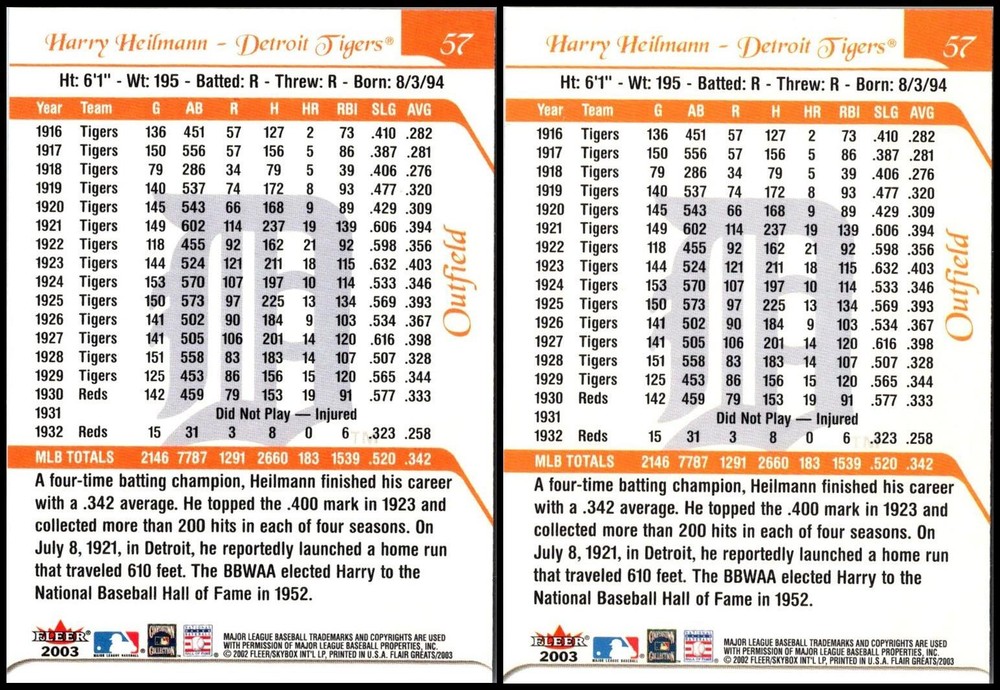 Auctionliner Lot Ebay Template About Auctionliner Other Listings Feedback Add to Favorites Contact Us eBay Store Auctionliner Sports Cards Harry Heilmann (2) Card Lot - LIMITED EDITION – RARE GEM *Please double check that the item description matches the image. Please message us for any questions. Thanks! Description Harry Heilmann Category Baseball Year 2003 Product Multiple Card Number Multiple Dimensions 3¼" x 2¼" SKU AL_Harry Heilmann Payment : We Accept Paypal And Ebay Standard Forms Of Payment. Shipping : Cards Will Be Shipped Secury And Safely in Semi Rigid or Top Loader, depending on value. If you buy multiple items, please contact me, as I will combine shipping. Returns and Claims : We accept returns if within 14 days of receipt. Please review images to ensure image matches description. About Us : At Auctionliner we offer High Quality Cards - Shipped Fast And Safely. We are constantly listing and adding new inventory. More Harry Heilmann Cards From Auctionliner