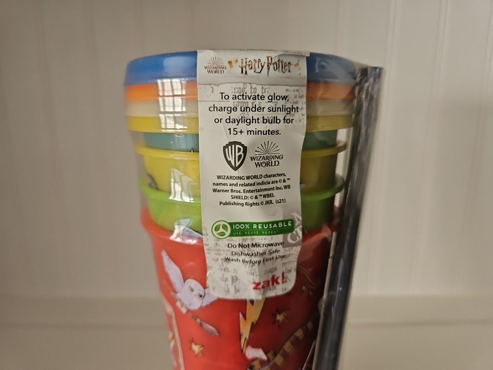HARRY POTTER GLOW IN THE DARK TUMBLER SET 25 OZ WITH STRAWS AND LID NEW IN PACKAGE